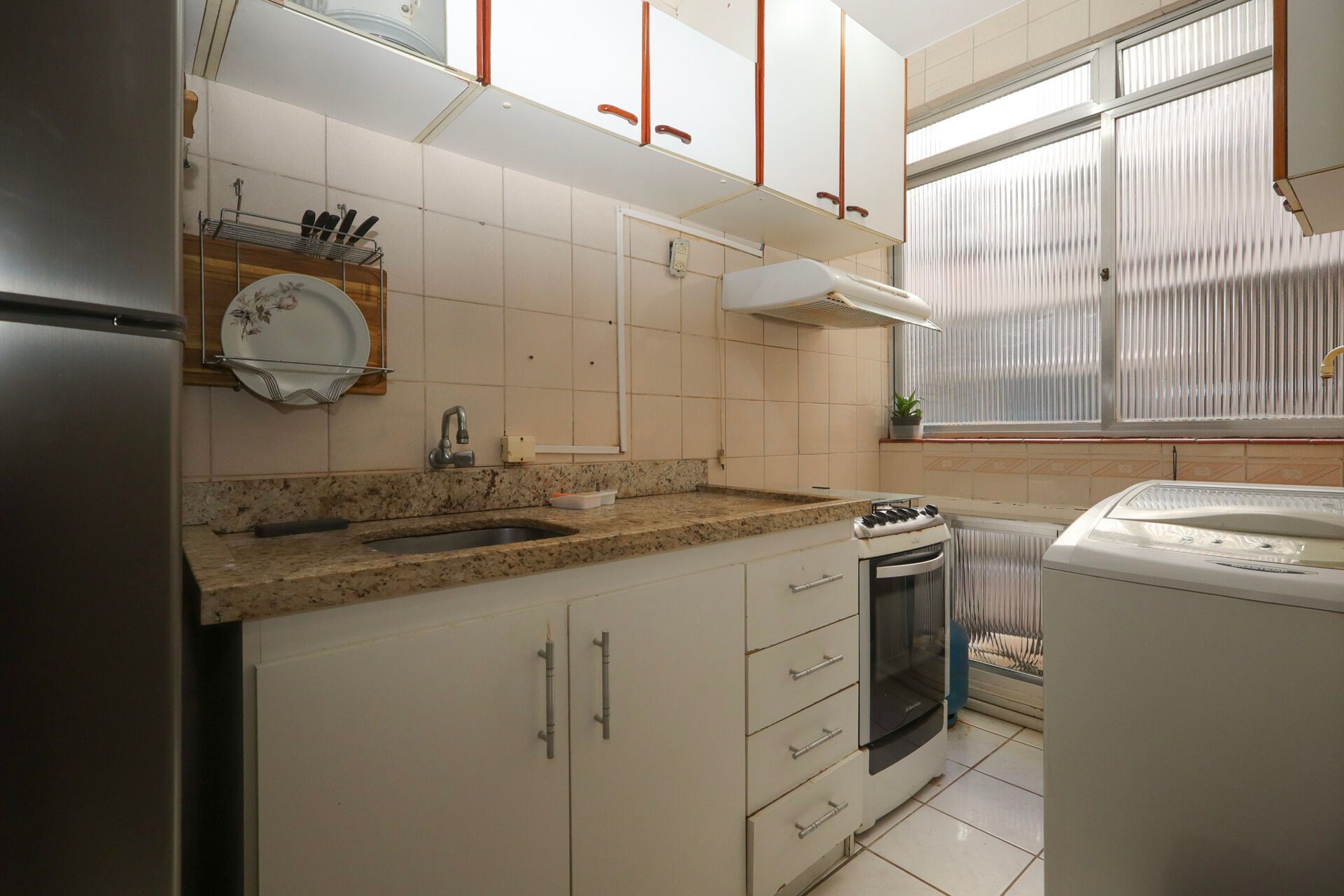 Apartamento semimobiliado com 55 m² de área privativa com 2 dormitórios, banheiro social com ventilação natural, living amplo para 2 ambientes, cozinha montada com área de serviço. Não possui vaga de garagem.