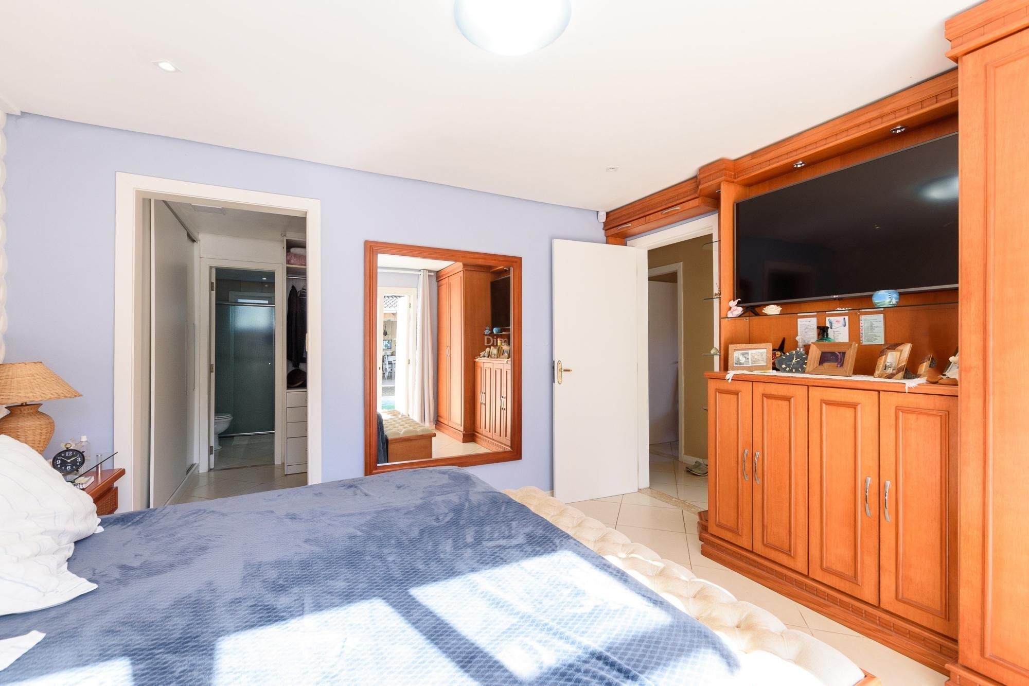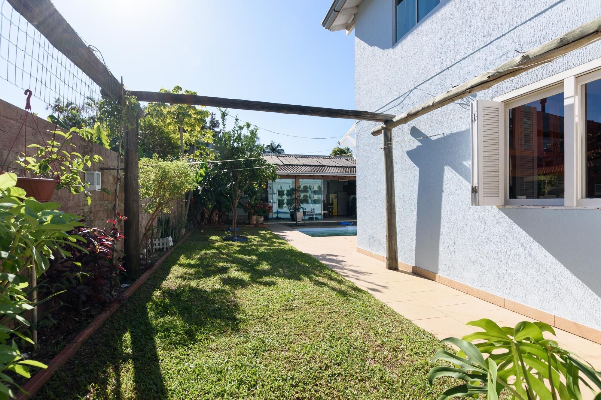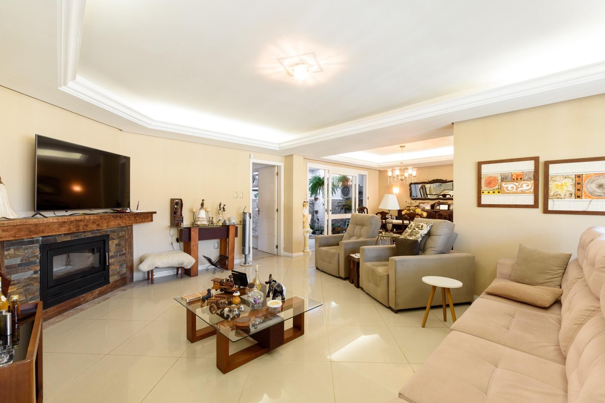 Ampla casa térrea com 350 m² privativos, muito bem distribuídos com 03 dormitórios sendo 01 suíte máster com pia de casal com 2 cubas, sala de estar e jantar, lareira, lavabo, copa, cozinha, jardim de inverno, lavanderia e garagem para 05 carros.