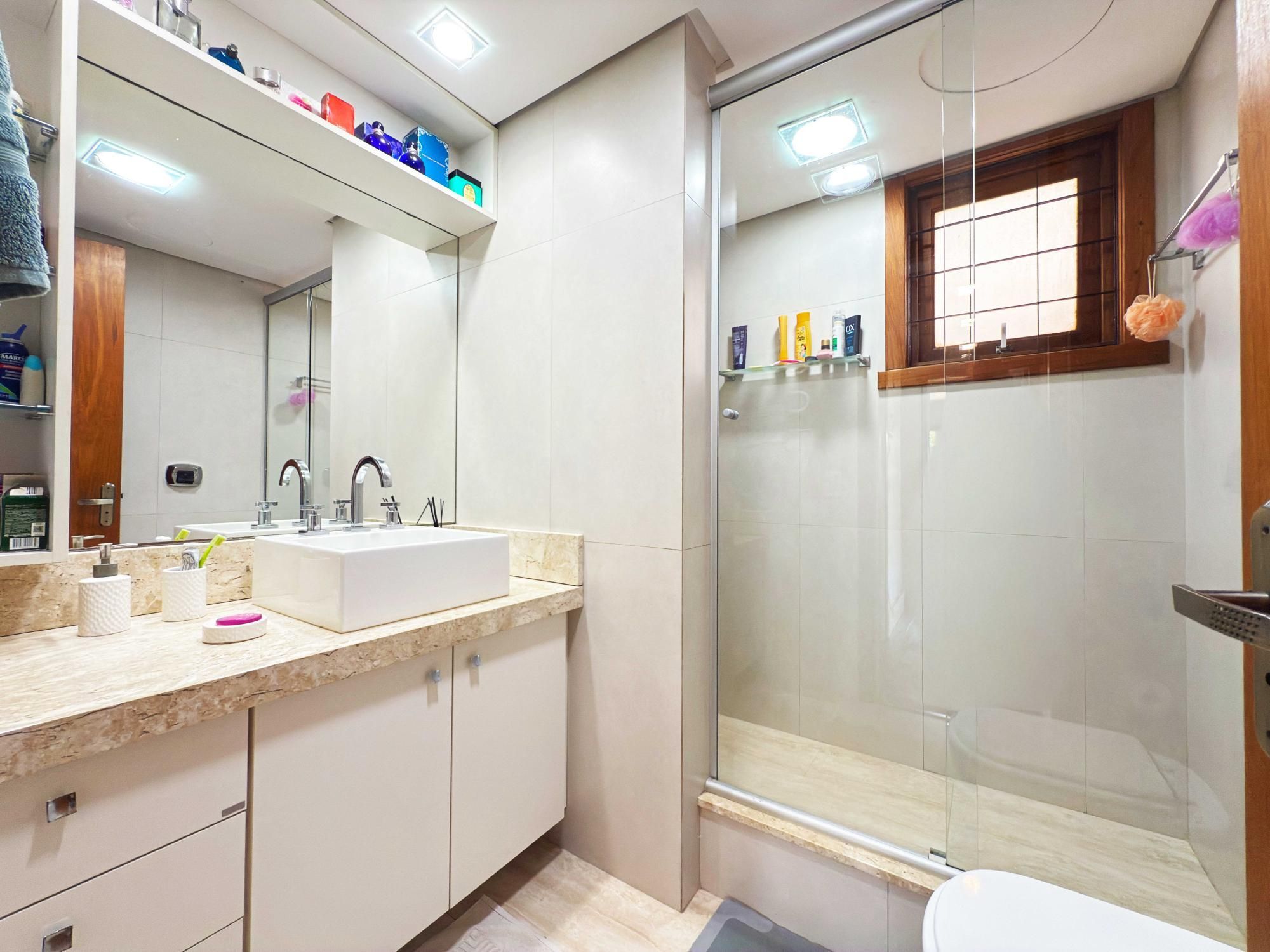 Com uma área de 209m², este imóvel dispõe de 3 quartos, sendo 1 suíte, e 4 banheiros, garantindo amplo espaço e privacidade para toda a família. Além disso, conta com 2 vagas de garagem com tomada para carro elétrico, proporcionando comodidade e segurança.