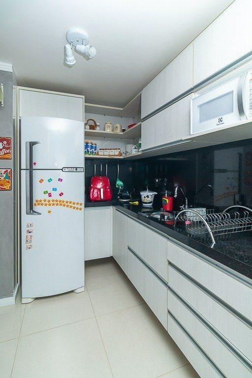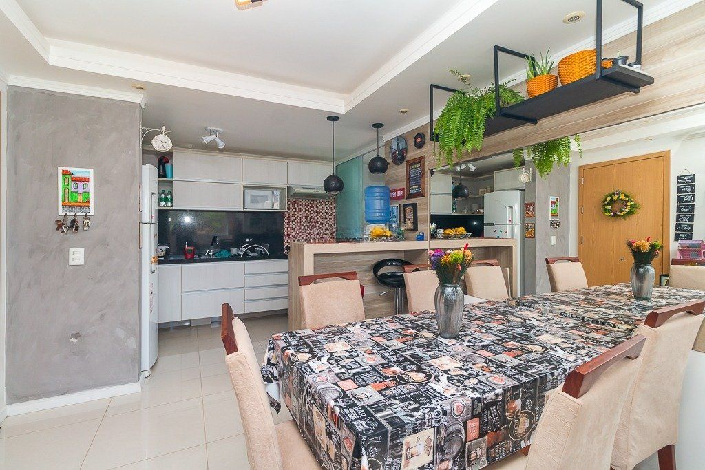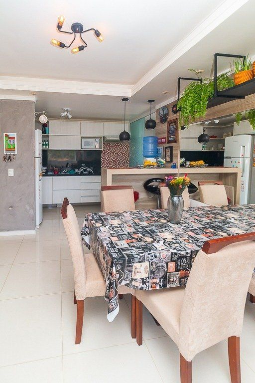 São 3 dormitórios, sendo 1 suíte, sala ampla para dois ambientes, cozinha americana, banheiro social e área de serviço. O imóvel conta com duas vagas de garagem .