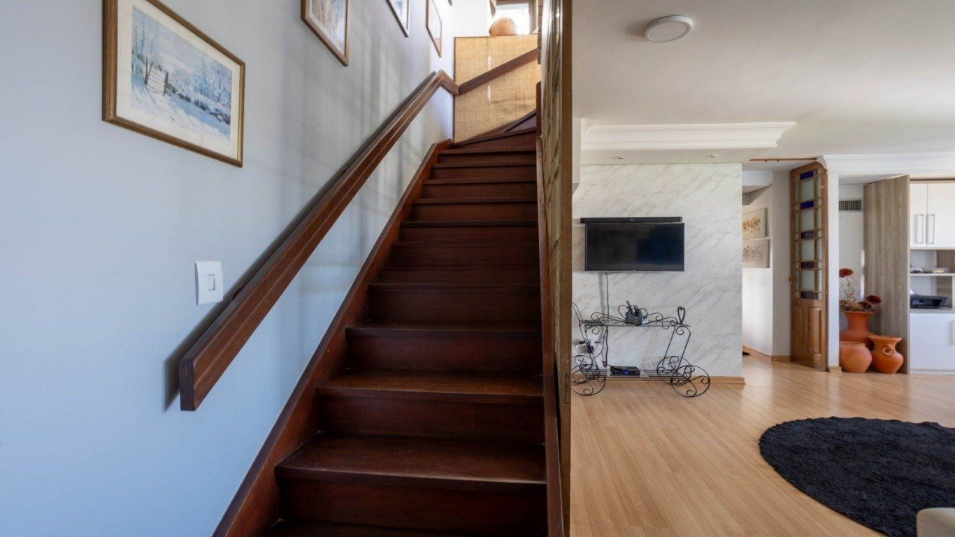 O 1° andar conta com amplo living para 2 ambientes, com hall de entrada, sala de estar e cinema, e um ótimo espaço para home office pronto. Na área íntima, originalmente possuía 3 dormitórios, atualmente transformados em 2, sendo 1 suíte, com fácil possibilidade de reversão ao modelo inicial. A cozinha conta com o espaço ideal, móveis sob medida, mesa para refeições rápidas do dia a dia, área de serviço separada, depósito individual, banheiro auxiliar e lavabo.