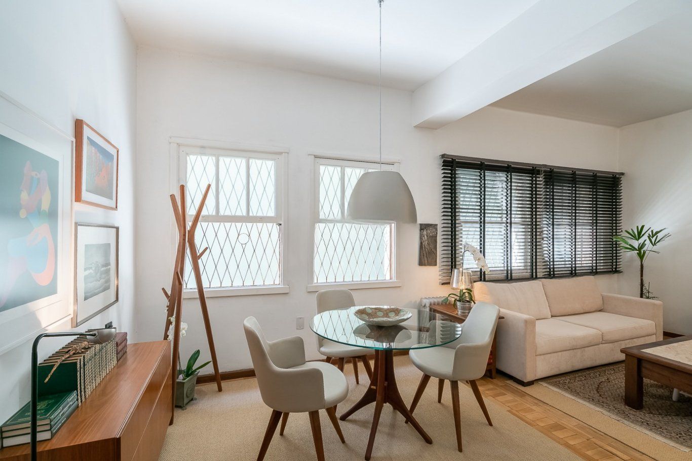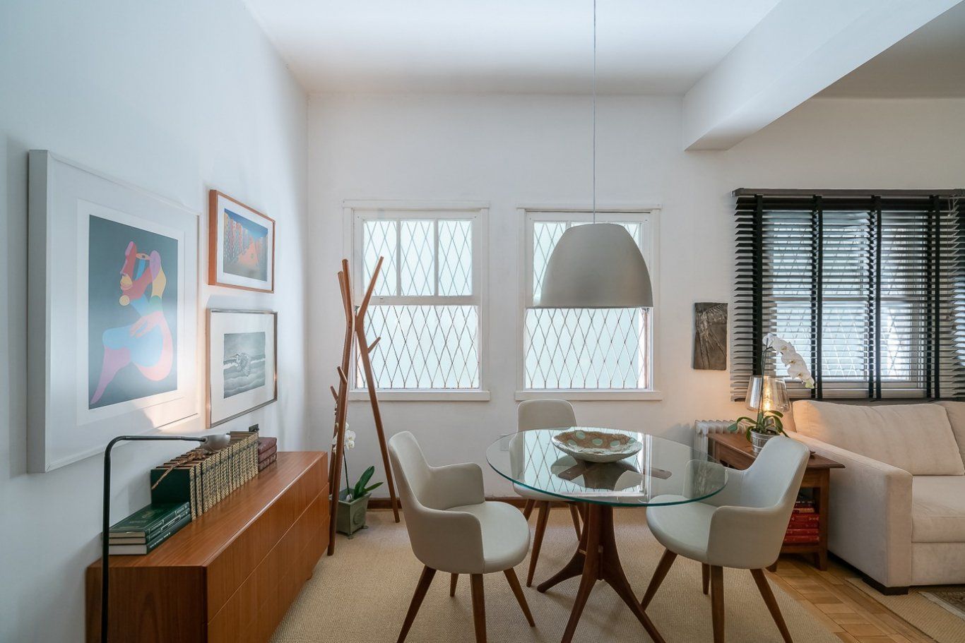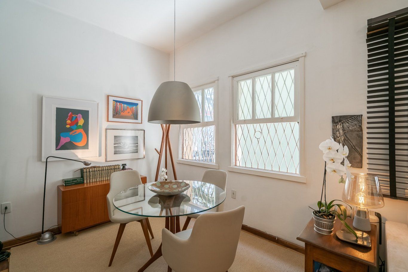 Sala de jantar integrada, ventilada e iluminada, com duas janelas grandes.