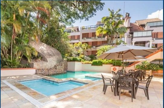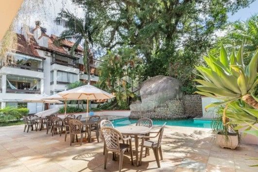 Na cobertura amplo espaço com lareira e churrasqueira integradas,  terraço externo aberto e com vista para o Rio Guaíba.