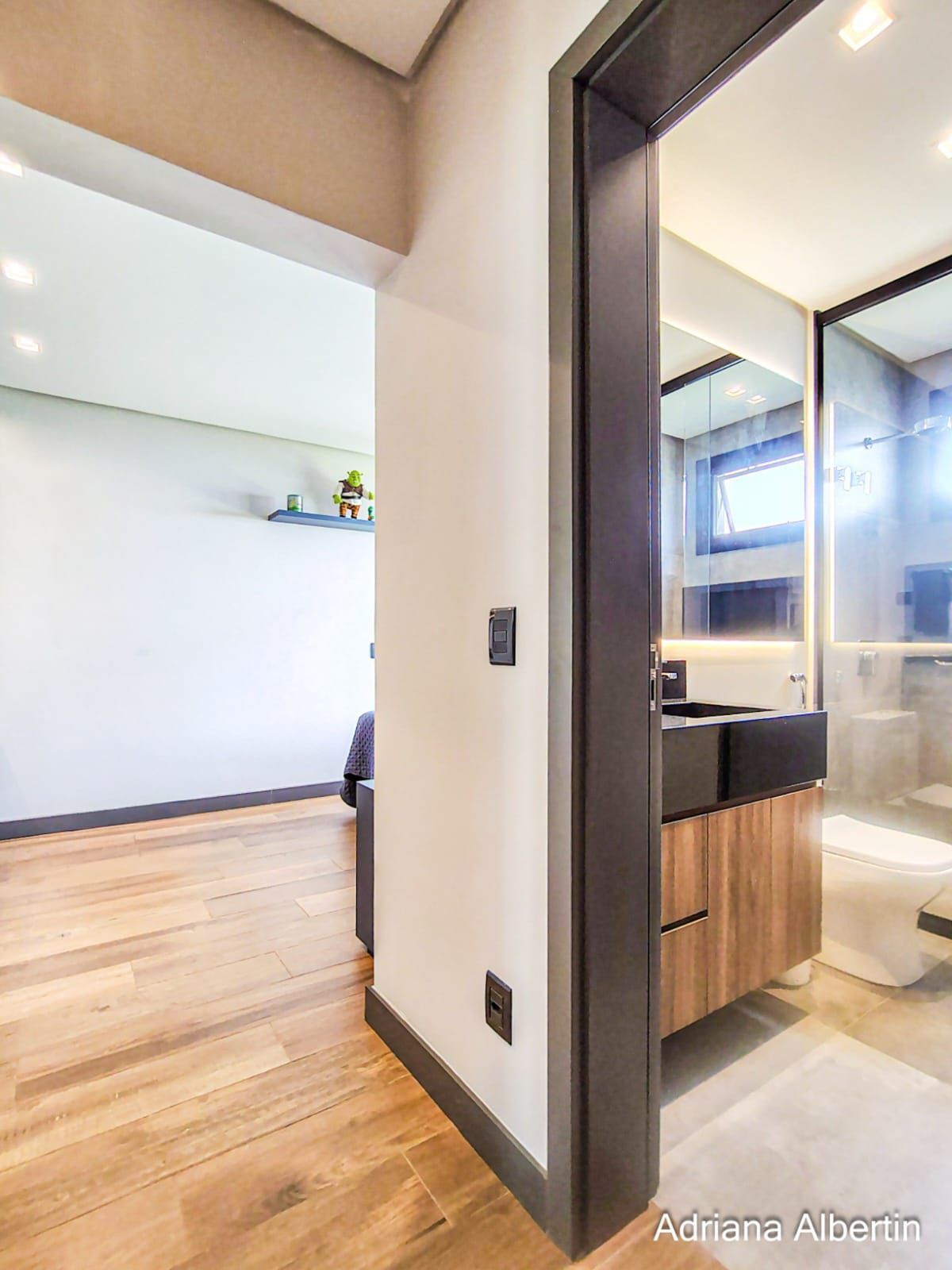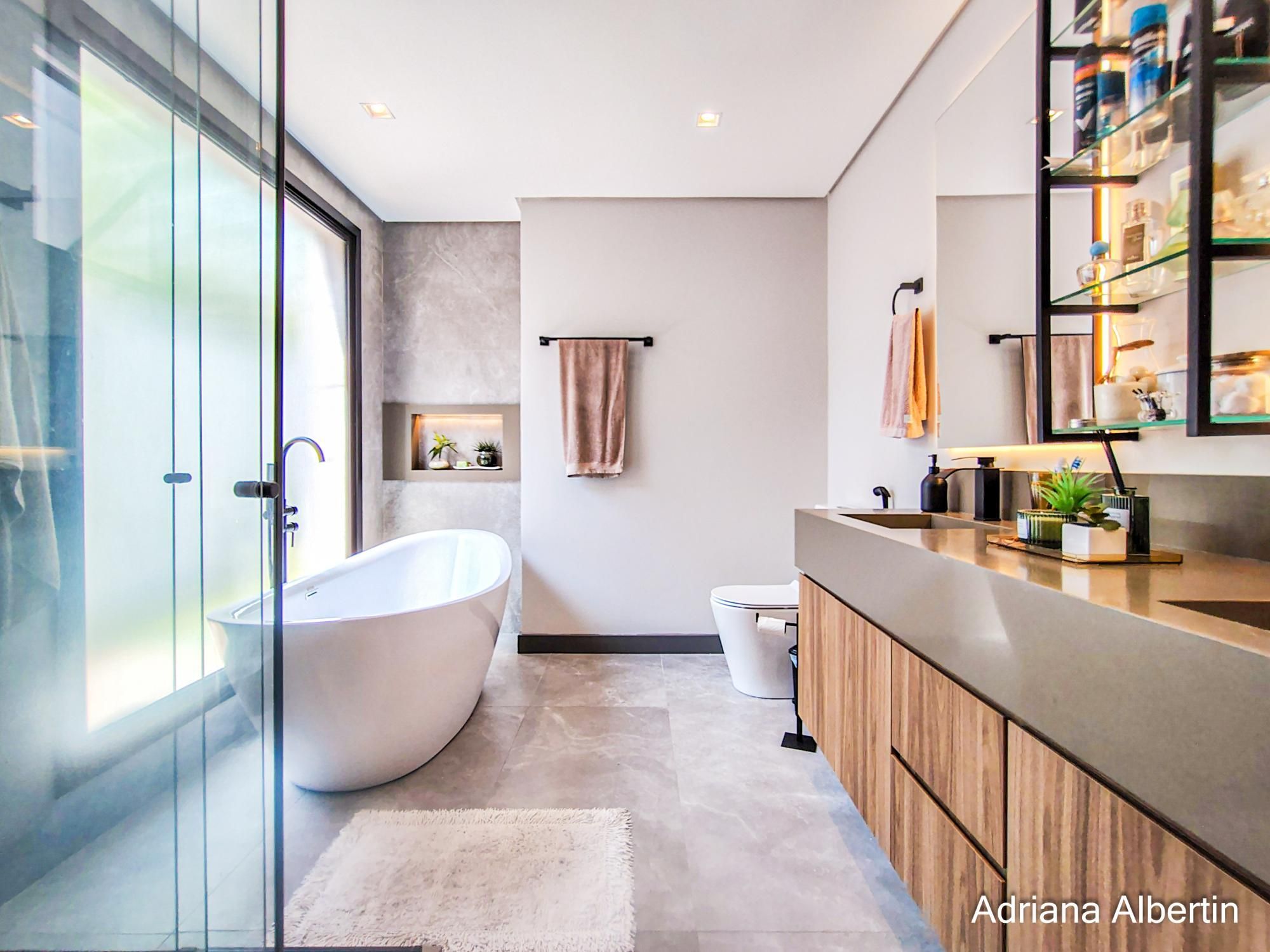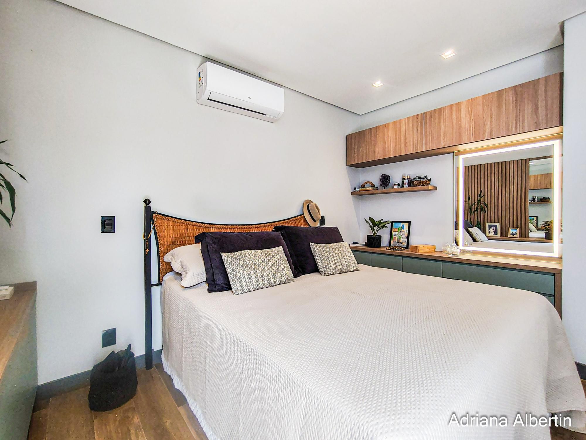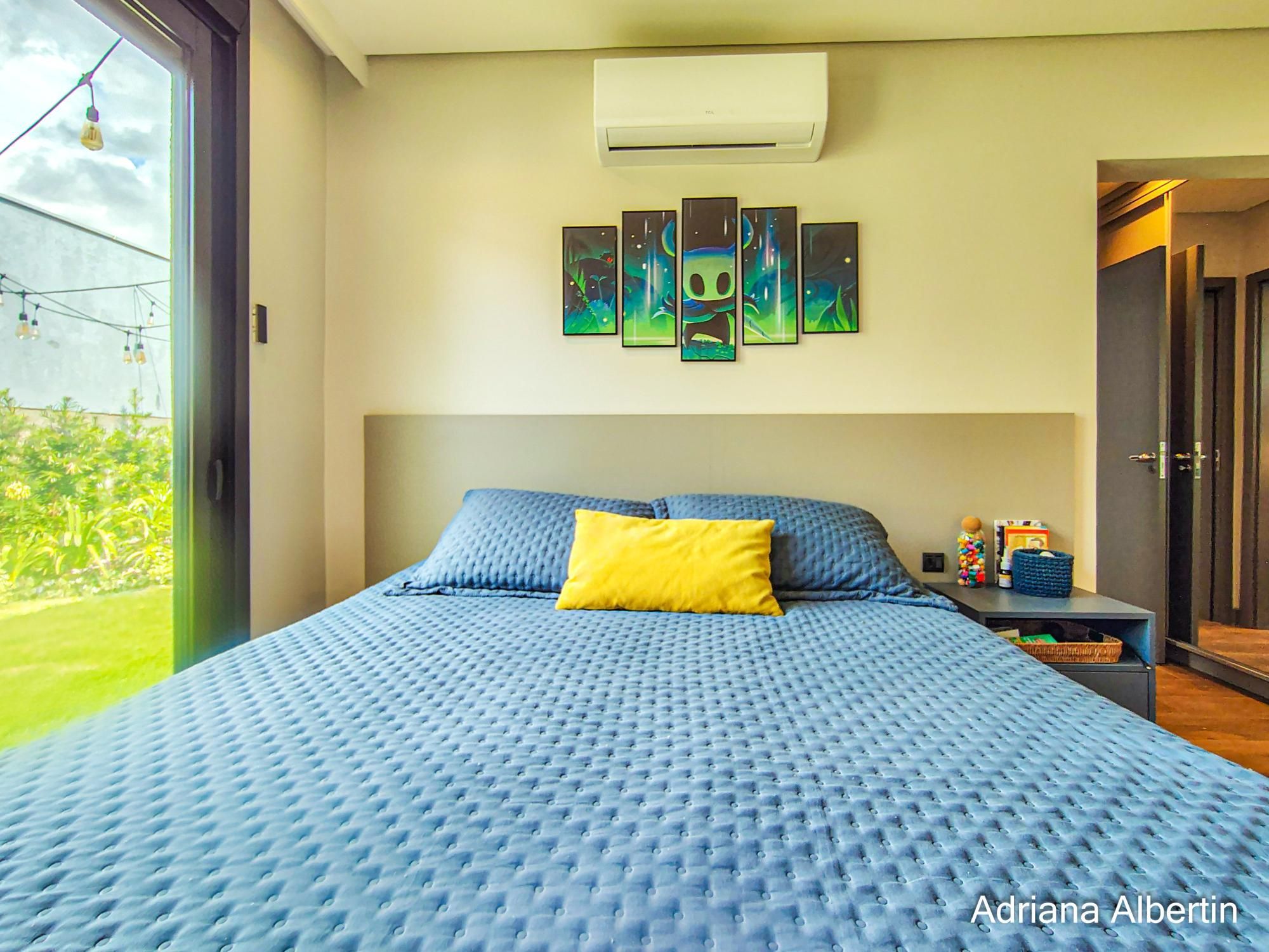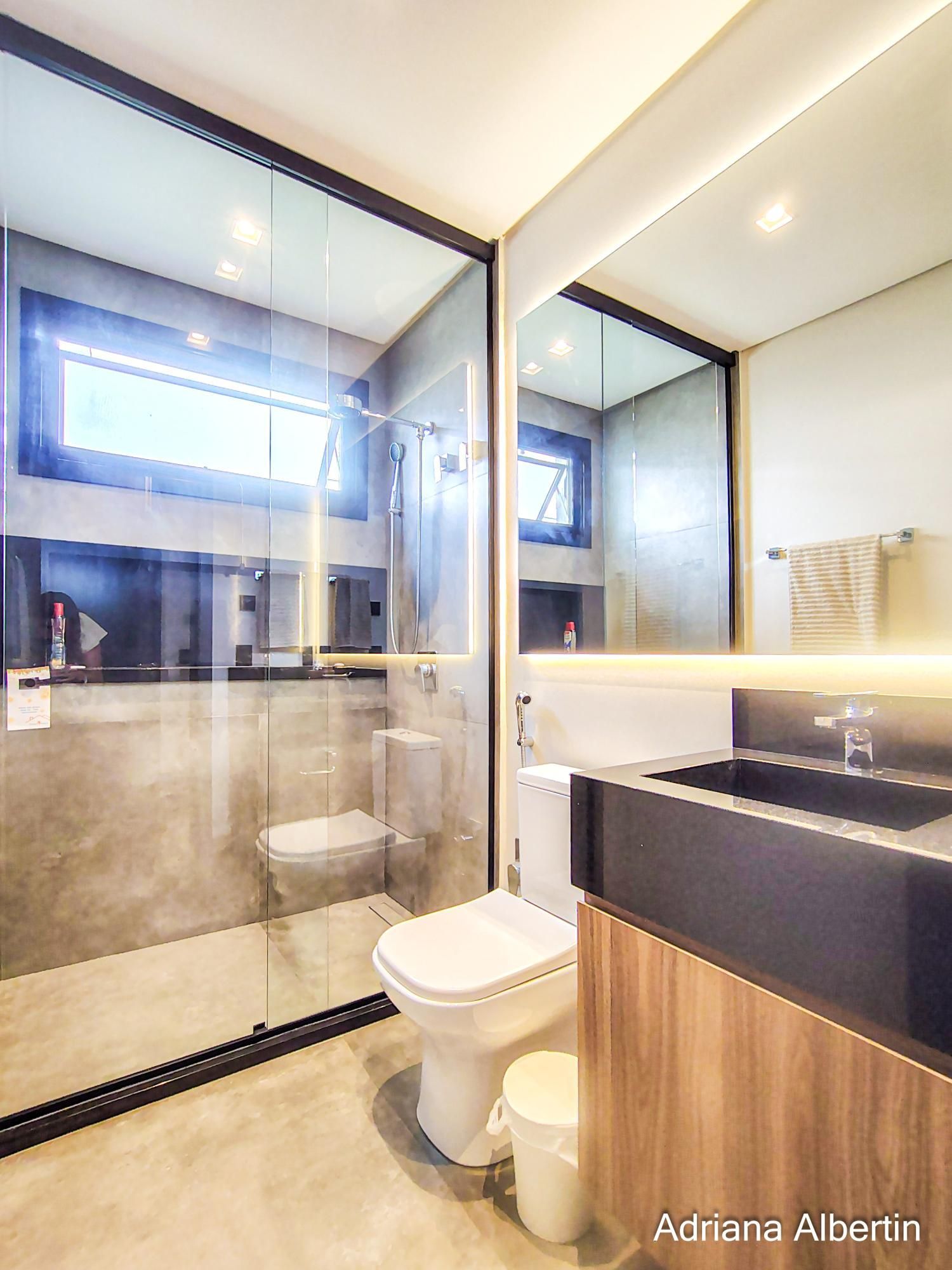 São 3 suítes, com destaque para a suíte máster, que conta com closet, banheira de imersão e amplo janelão com vidro jateado, garantindo luminosidade natural com privacidade. Há ainda um espaço multiuso, ideal para escritório ou quarto dormitório.