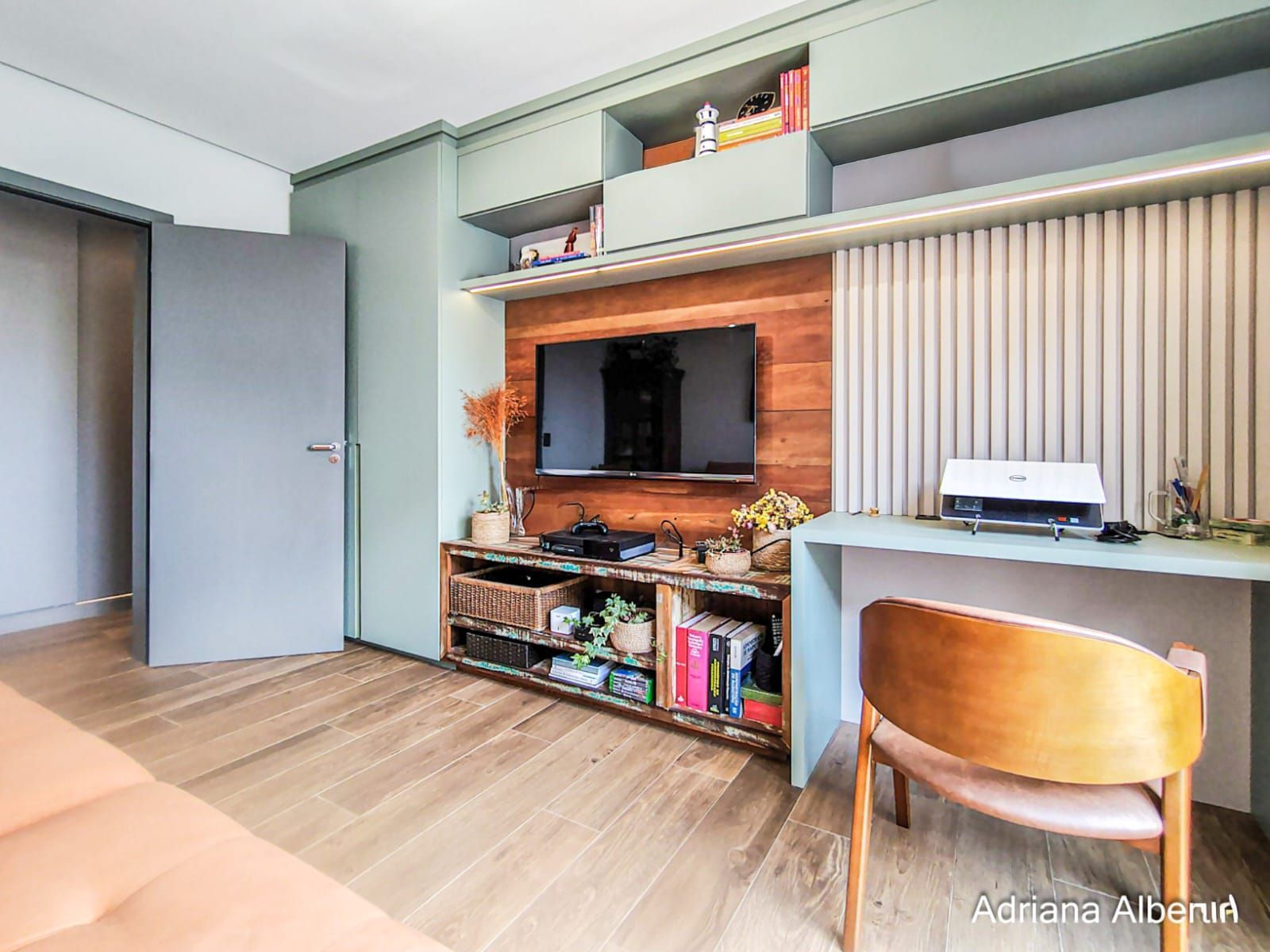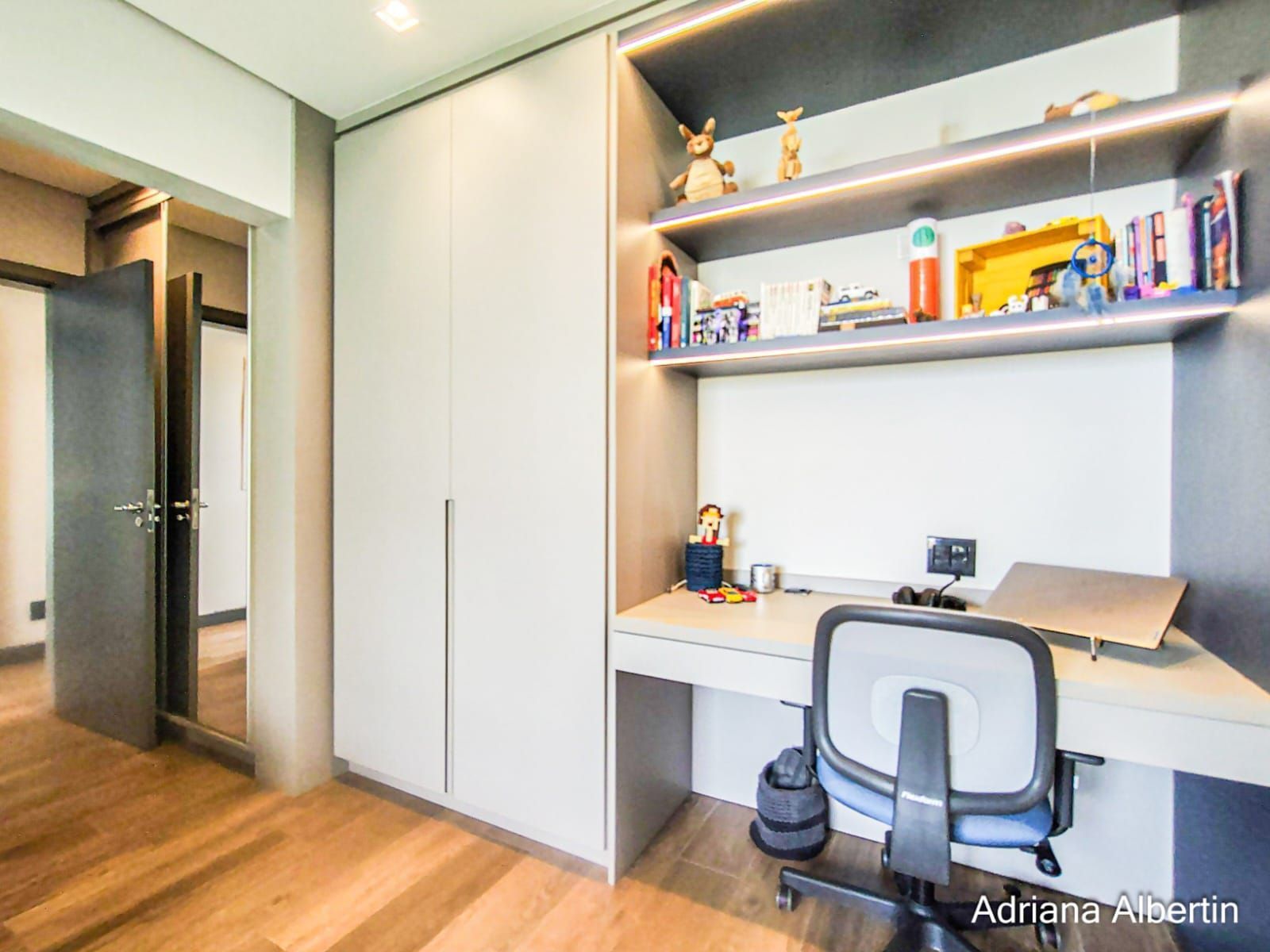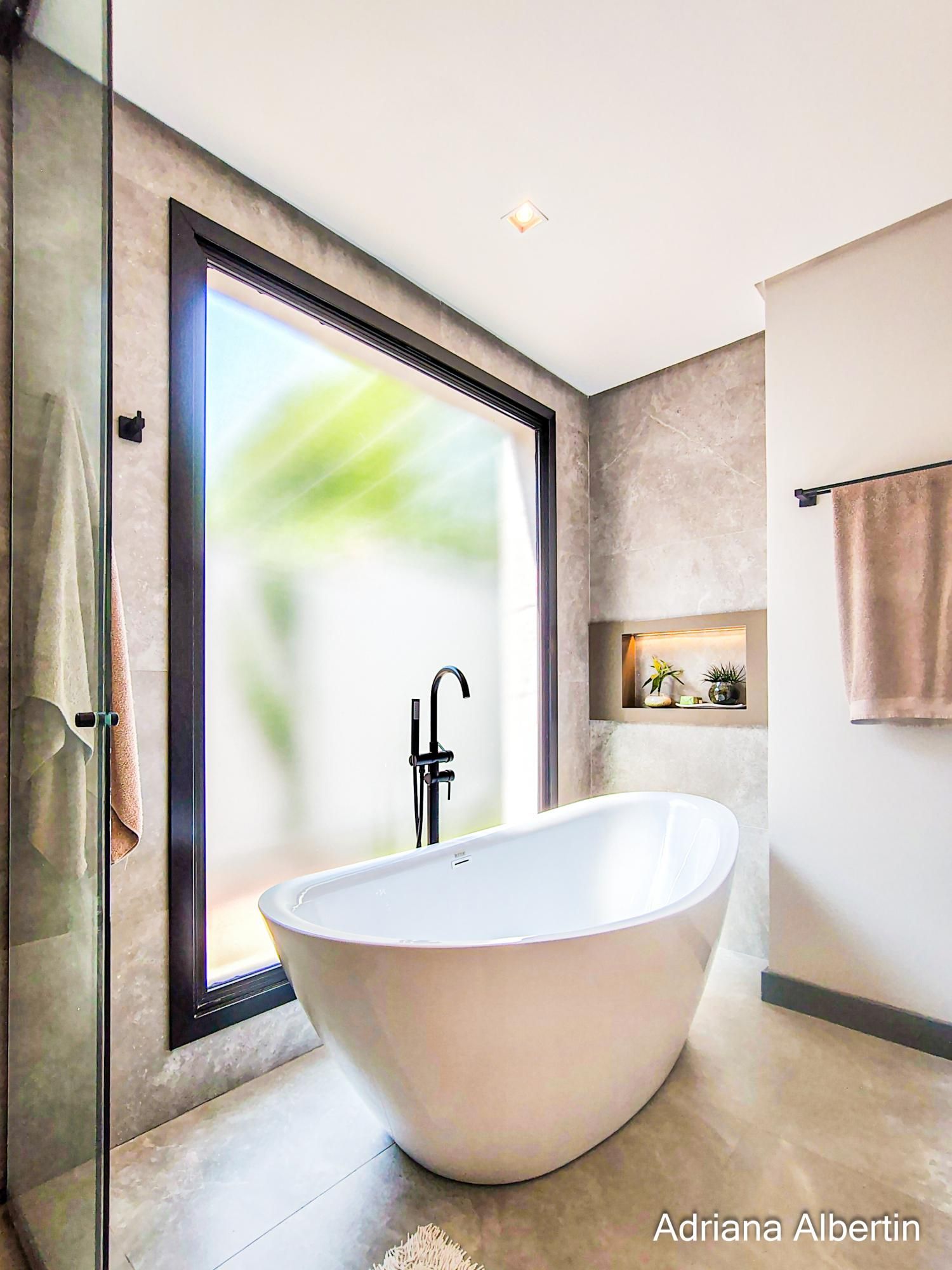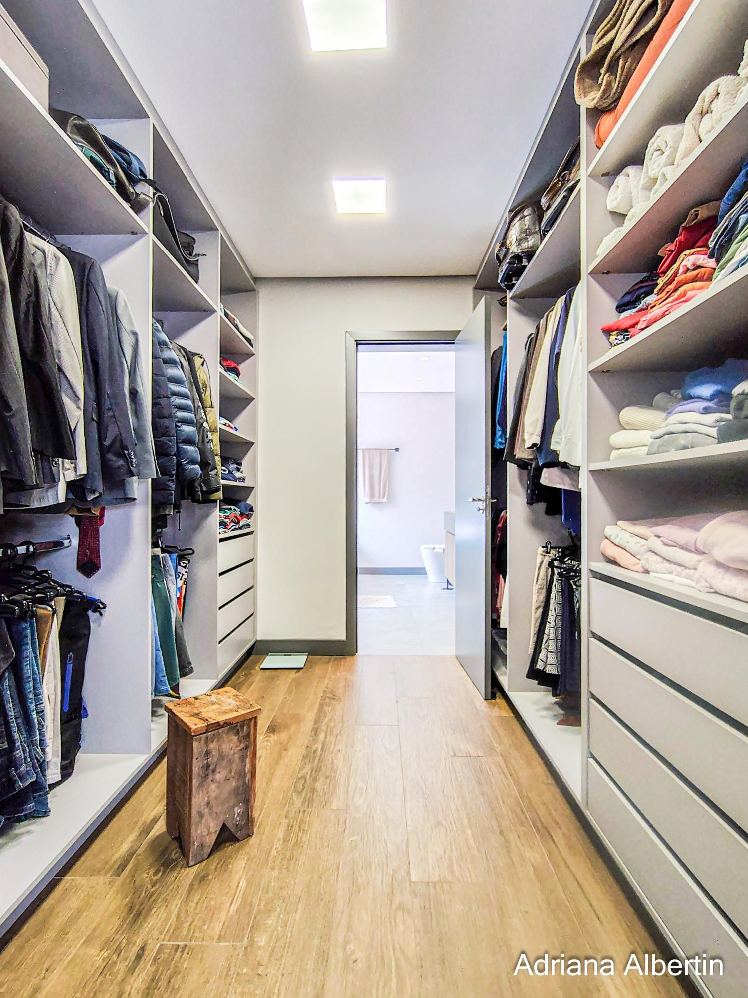 São 3 suítes, com destaque para a suíte máster, que conta com closet, banheira de imersão e amplo janelão com vidro jateado, garantindo luminosidade natural com privacidade. Há ainda um espaço multiuso, ideal para escritório ou quarto dormitório.