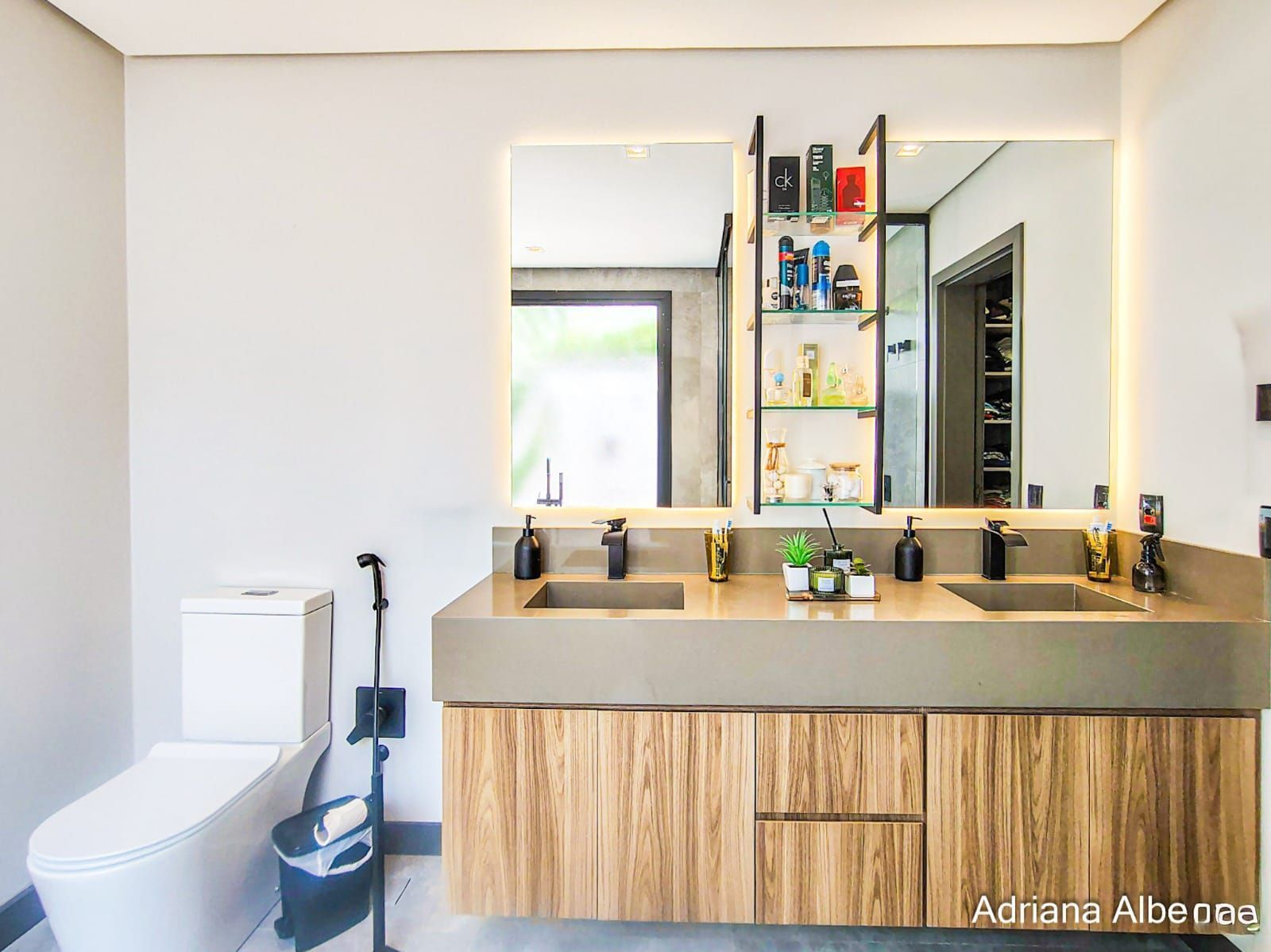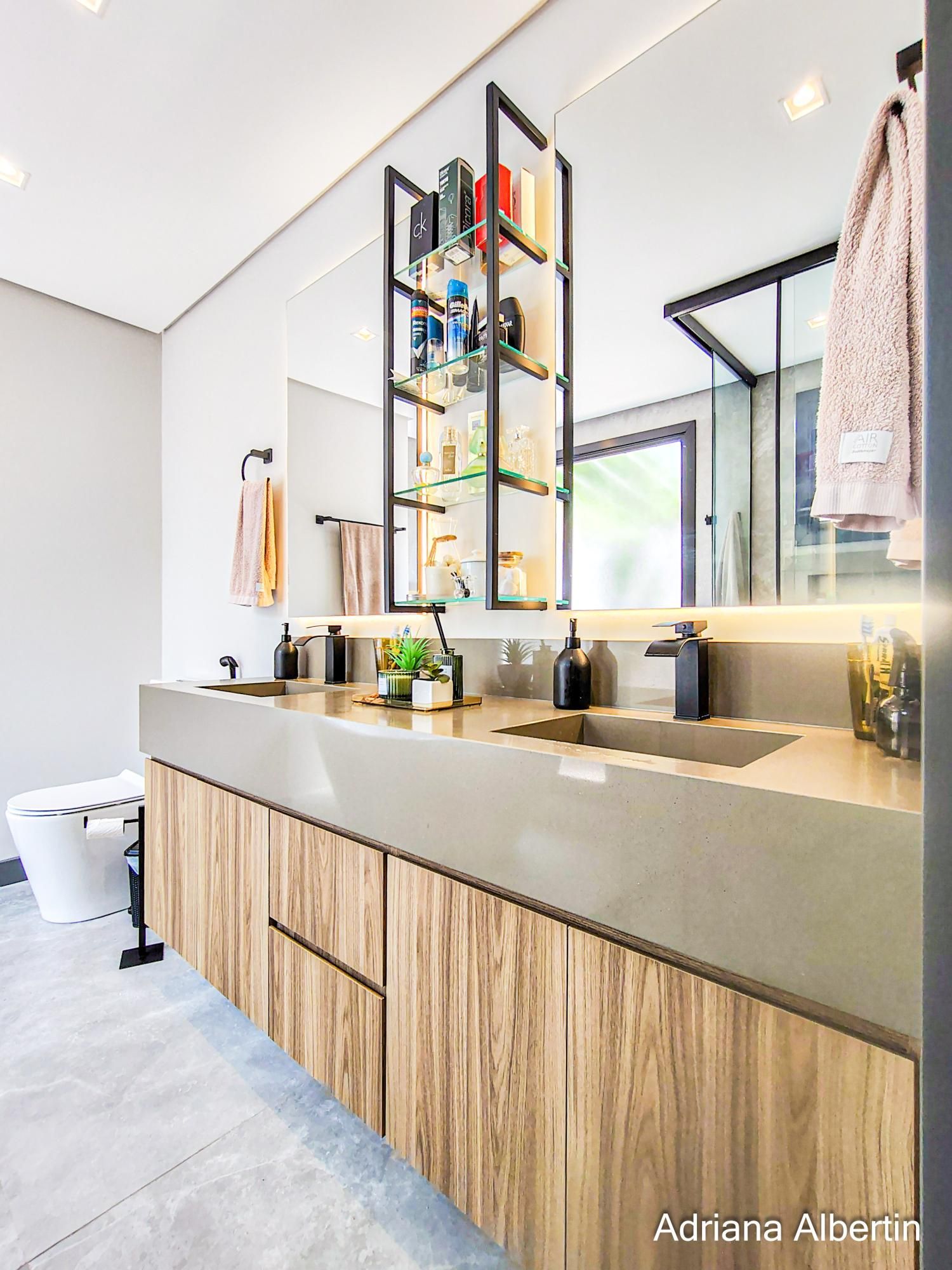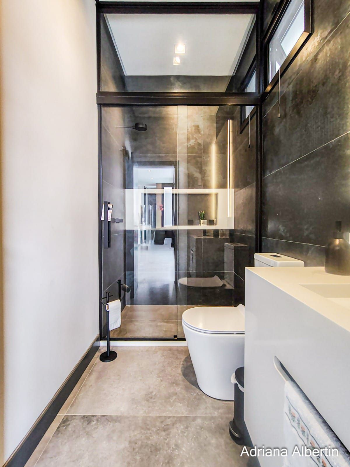 Os acabamentos reforçam a proposta do imóvel: porcelanato nas áreas sociais, piso vinílico na área íntima, piso aquecido nos banheiros da área íntima, persianas automatizadas, esquadrias em alumínio preto, telas anti-insetos e brises em alumínio com acabamento amadeirado na fachada.
