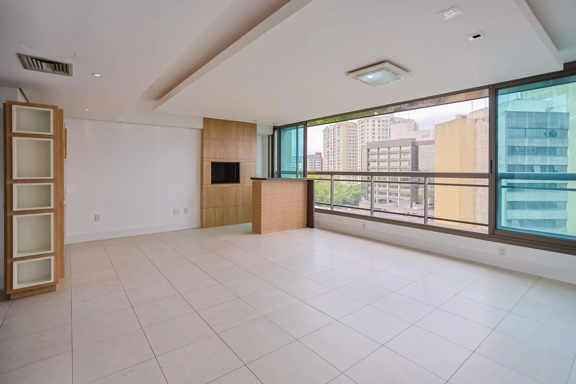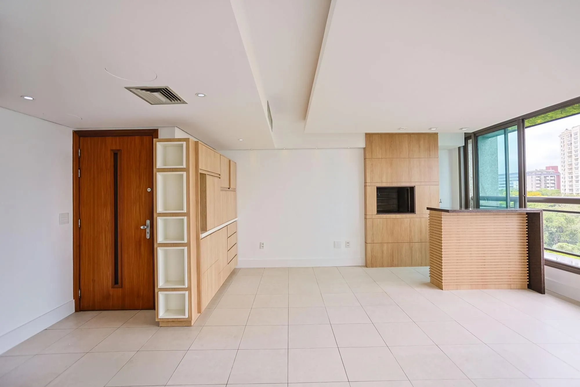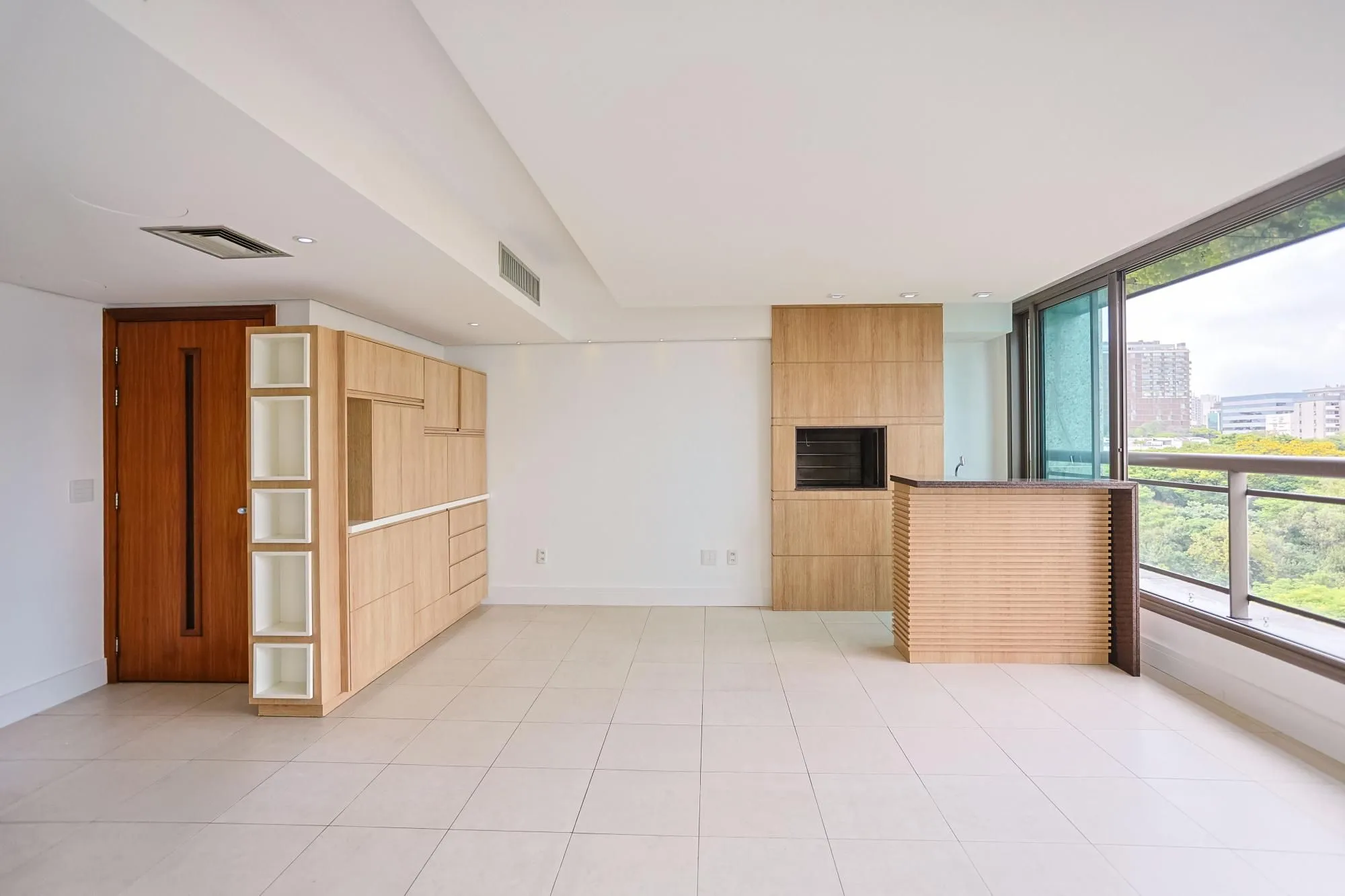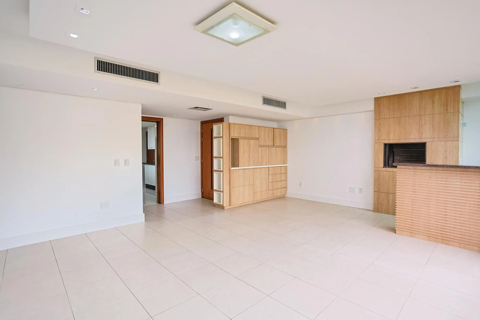 Apartamento semimobiliado com 120 m² de área privativa com 3 dormitórios sendo 1 suíte com banheira de hidromassagem, banheiro social com ventilação natural, lavabo, living amplo para 3 ambientes com espaço gourmet e churrasqueira, cozinha montada com área de serviço individual. Possui 2 vagas de garagem cobertas.