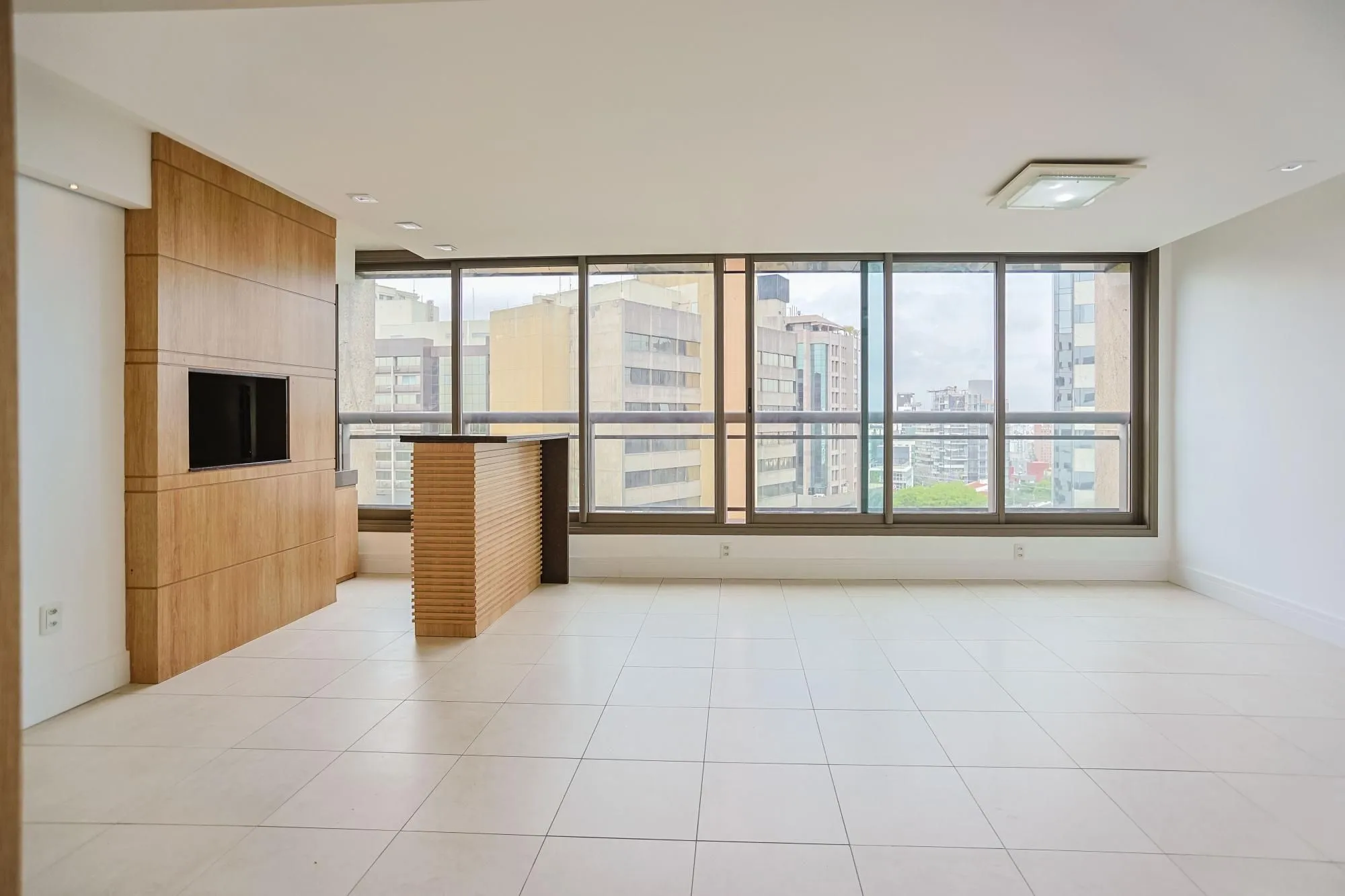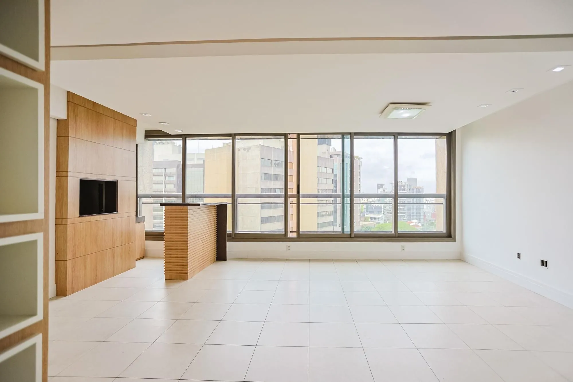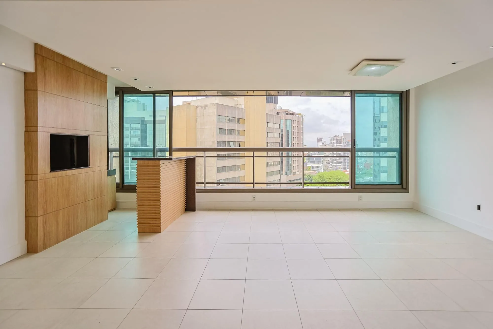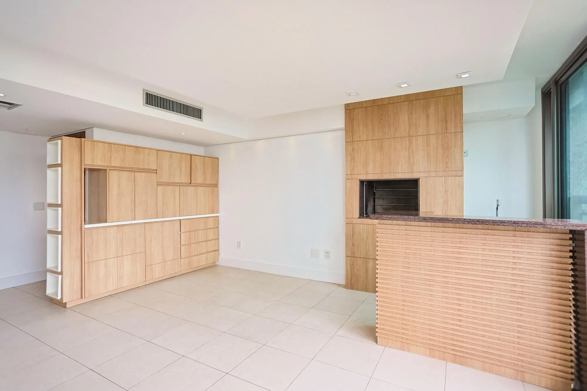 Apartamento semimobiliado com 120 m² de área privativa com 3 dormitórios sendo 1 suíte com banheira de hidromassagem, banheiro social com ventilação natural, lavabo, living amplo para 3 ambientes com espaço gourmet e churrasqueira, cozinha montada com área de serviço individual. Possui 2 vagas de garagem cobertas.