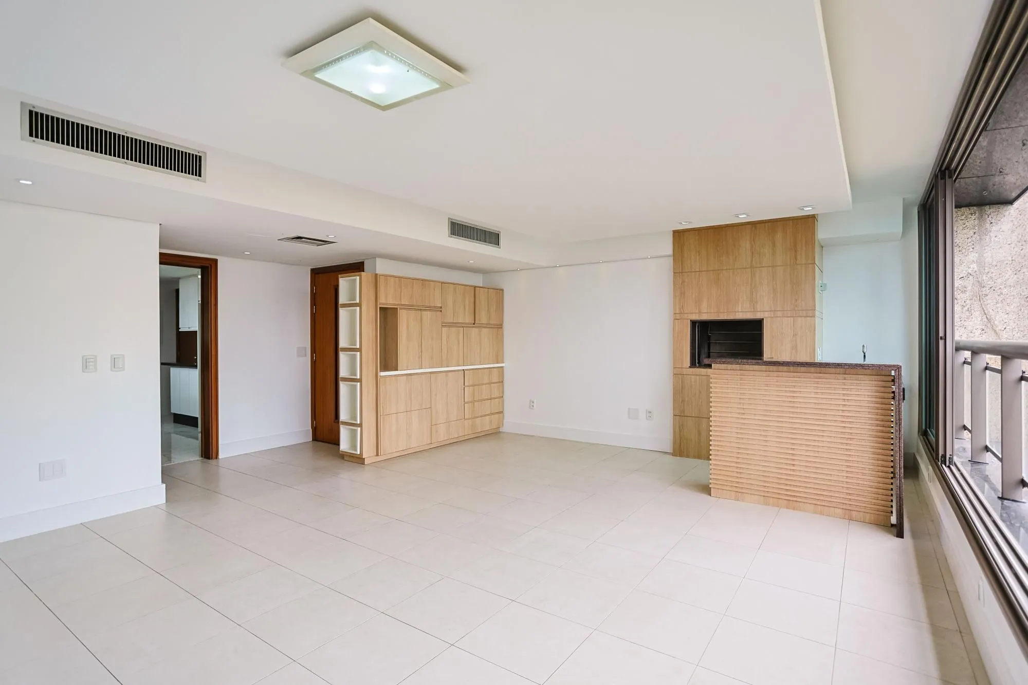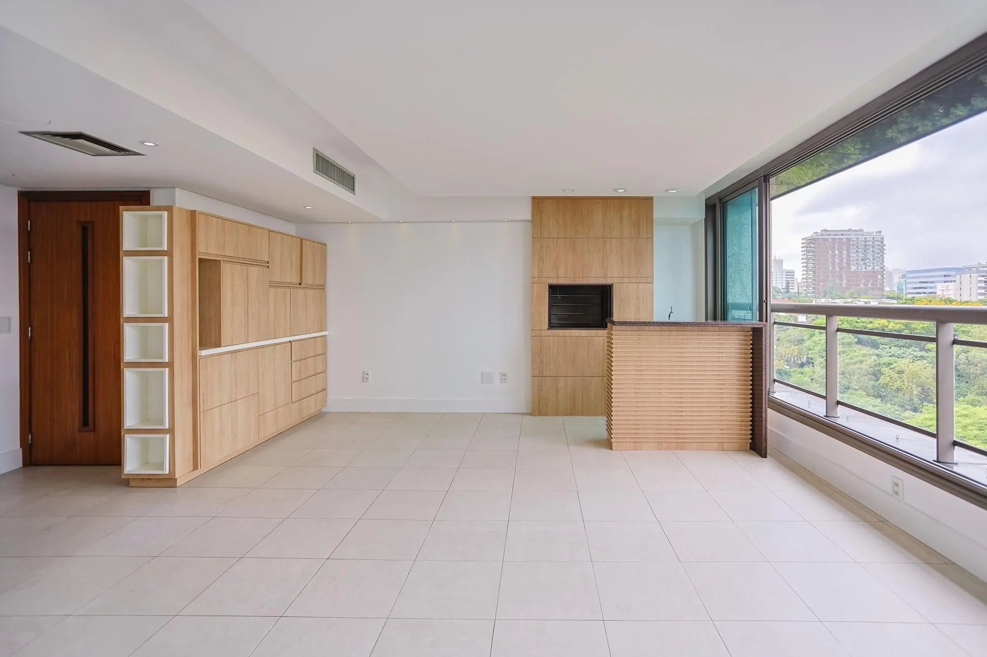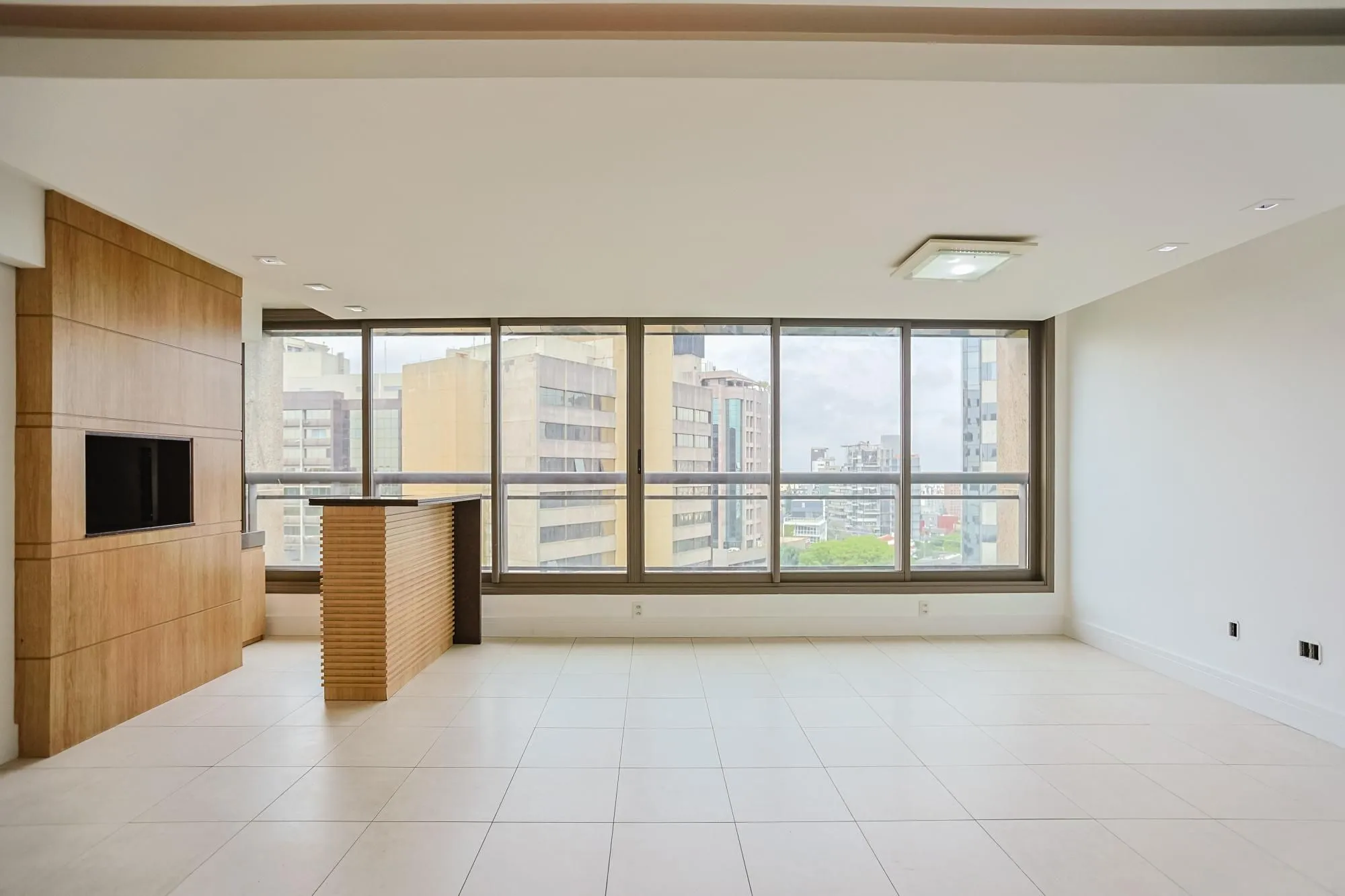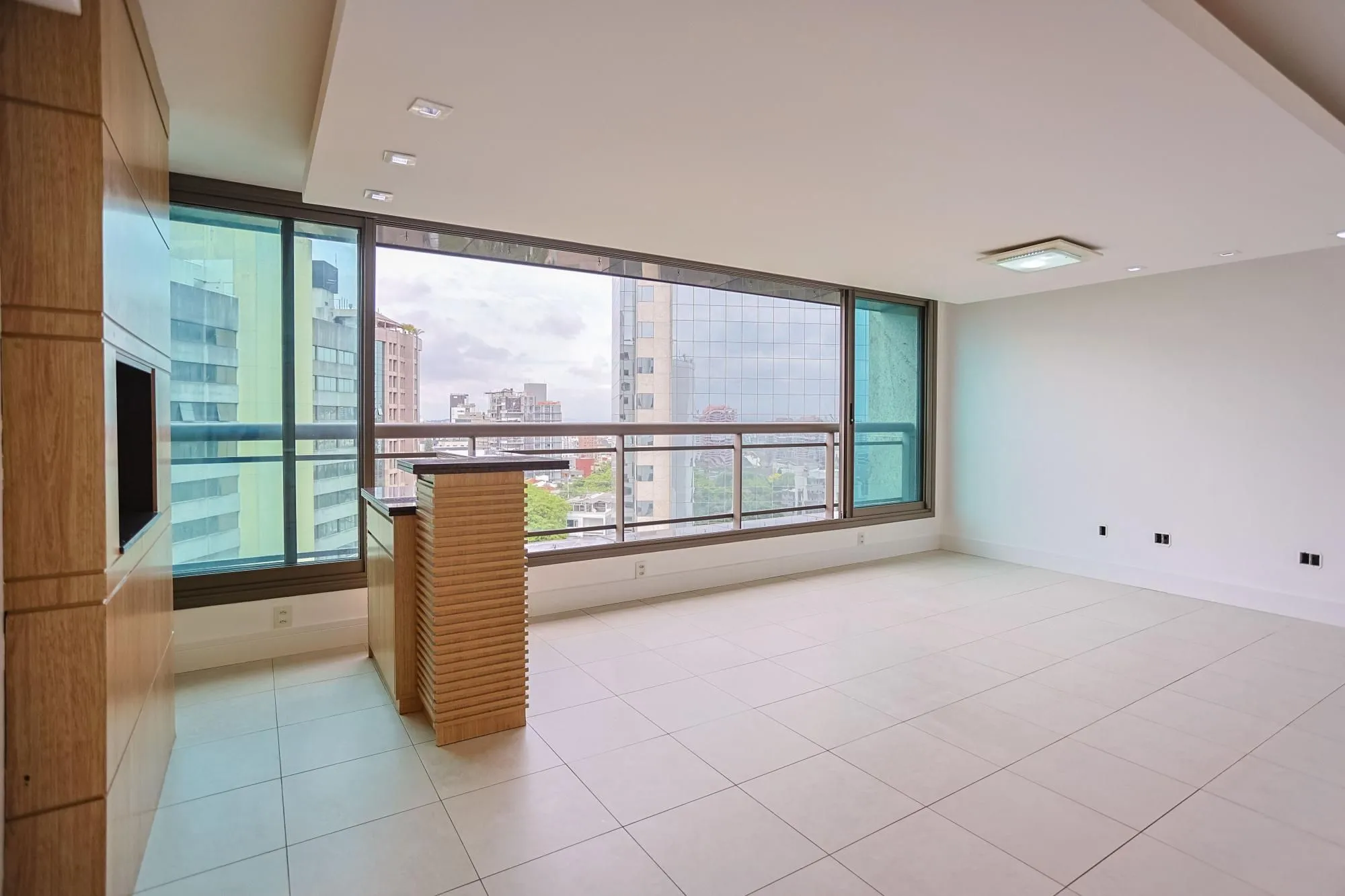 Apartamento semimobiliado com 120 m² de área privativa com 3 dormitórios sendo 1 suíte com banheira de hidromassagem, banheiro social com ventilação natural, lavabo, living amplo para 3 ambientes com espaço gourmet e churrasqueira, cozinha montada com área de serviço individual. Possui 2 vagas de garagem cobertas.