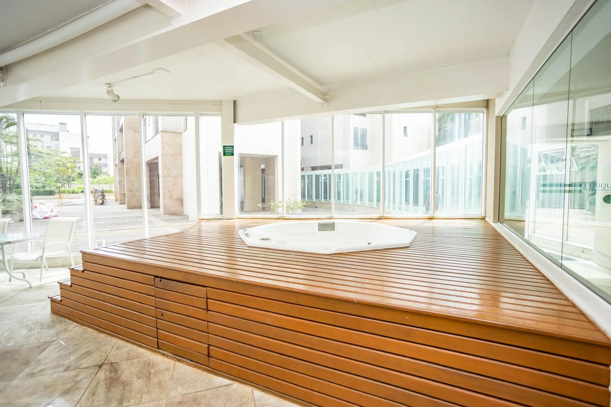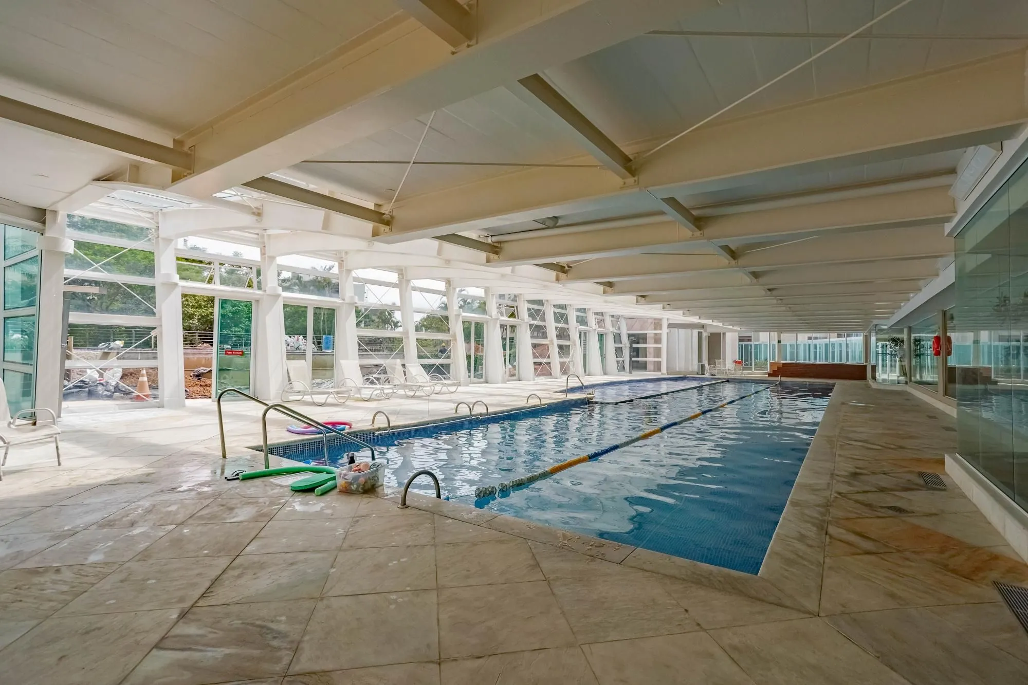 O condomínio é referência em infraestrutura, oferecendo lazer e conforto de resort: piscinas externa e térmica, sauna, salão de festas, espaço gourmet, quadra de tênis, quadra poliesportiva, sala de jogos, brinquedoteca, trilha, espaço fitness completo, restaurante, café, feira orgânica semanal, espaço web e portaria 24 horas.