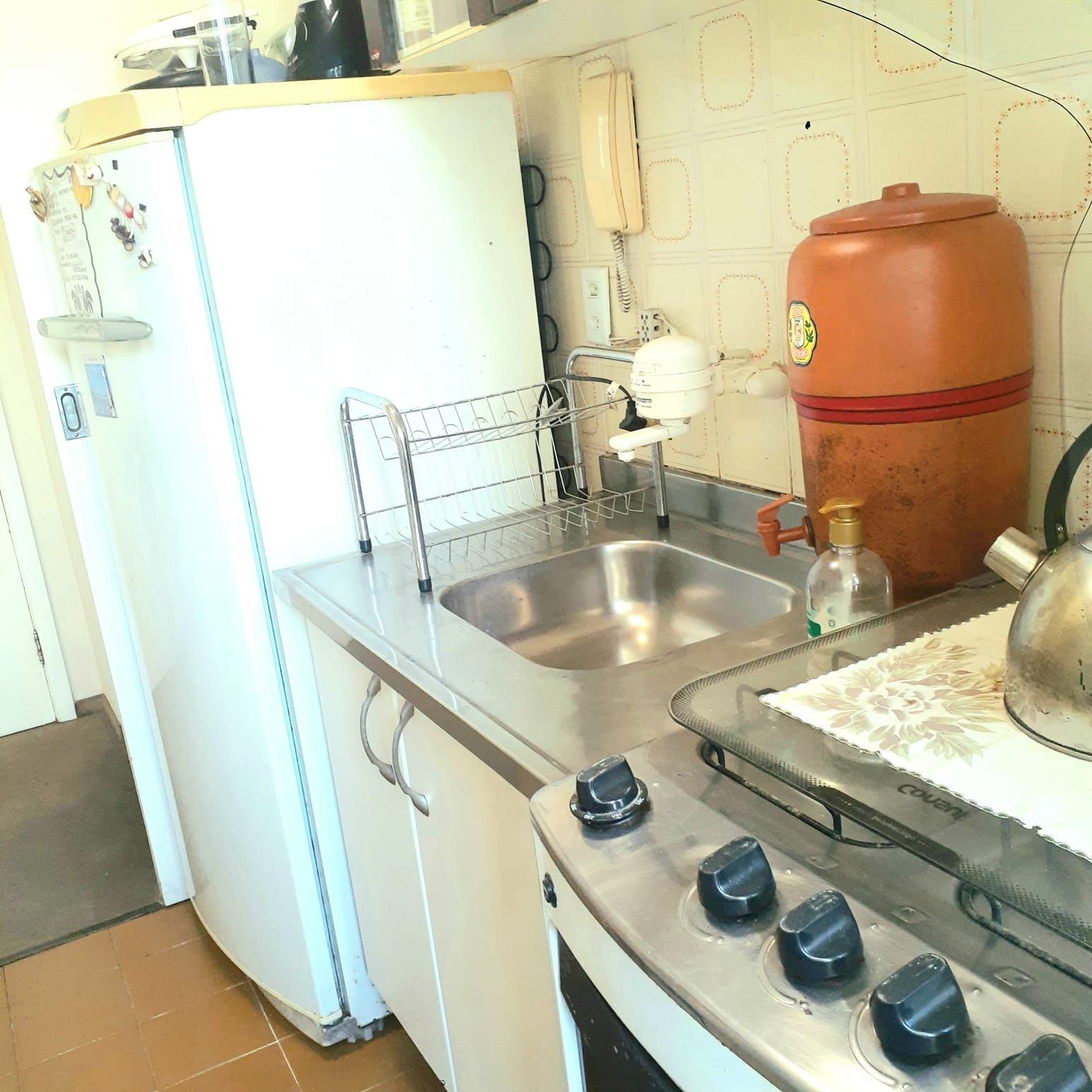 Apartamento com 38 m², bem distribuído em 1 quarto, sala, cozinha e área de serviço.