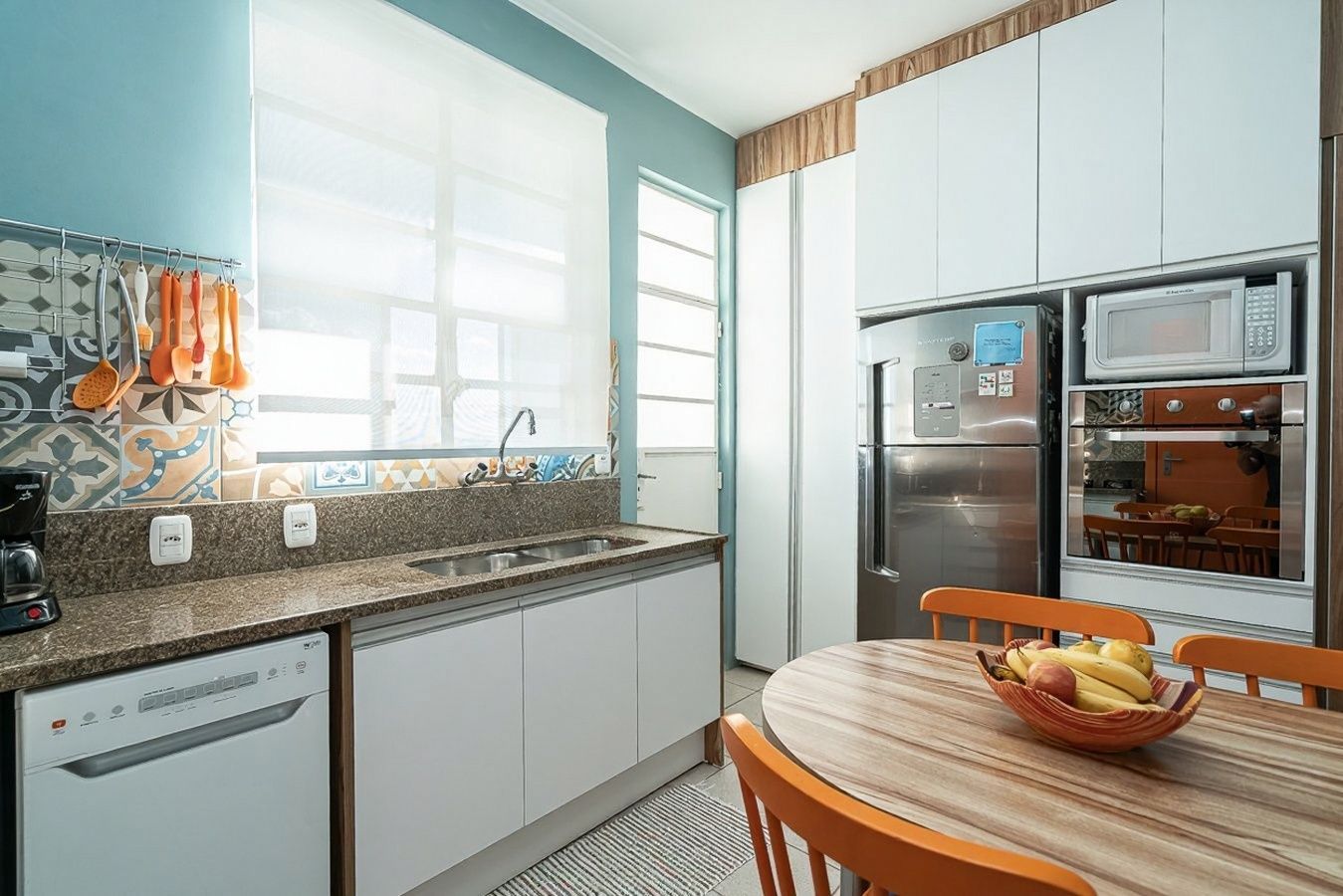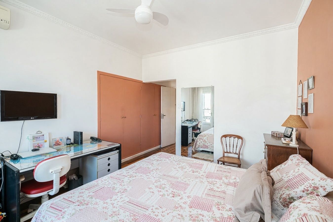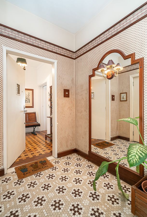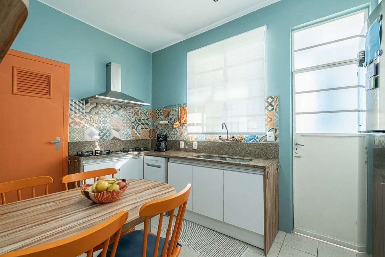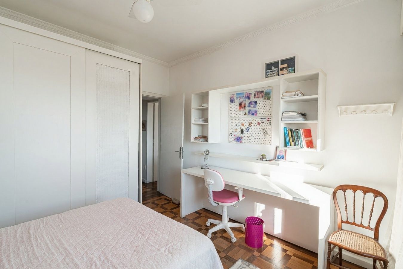 Possui três dormitórios, sendo uma suíte, living amplo para dois ambientes com lareira e sacada voltada para o norte, banheiro social completo, cozinha, área de serviço espaçosa e dependência de empregada com banheiro auxiliar.