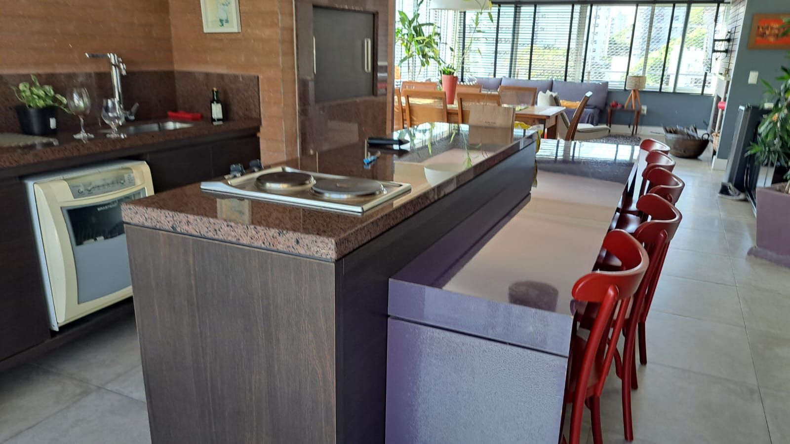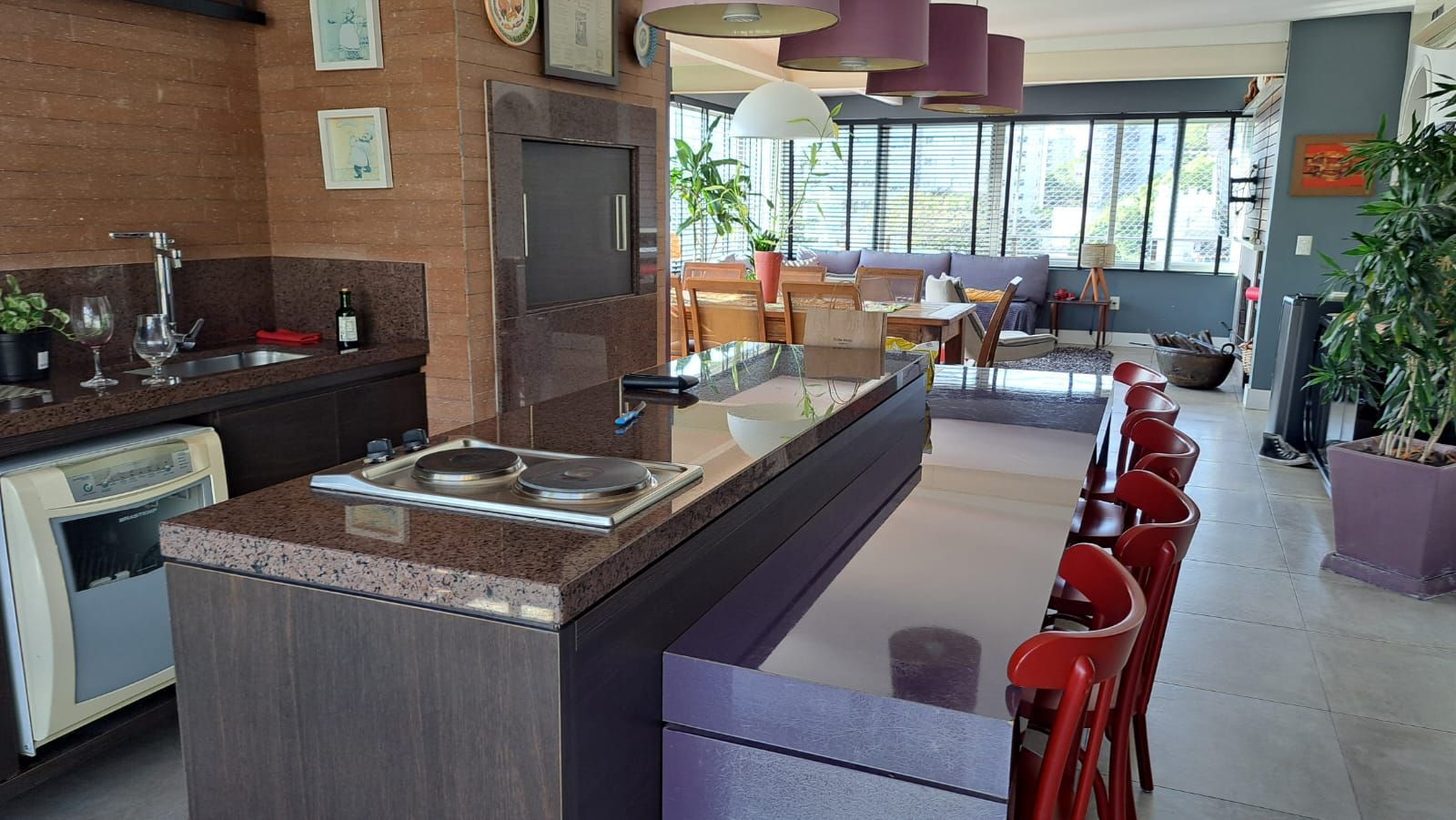 Os diferenciais desta cobertura incluem gás individual, lareira, área de serviço, escritório, cozinha com armários embutidos, aquecimento a gás, churrasqueira, ar condicionado, móveis planejados, piscina, cozinha gourmet e lavanderia.