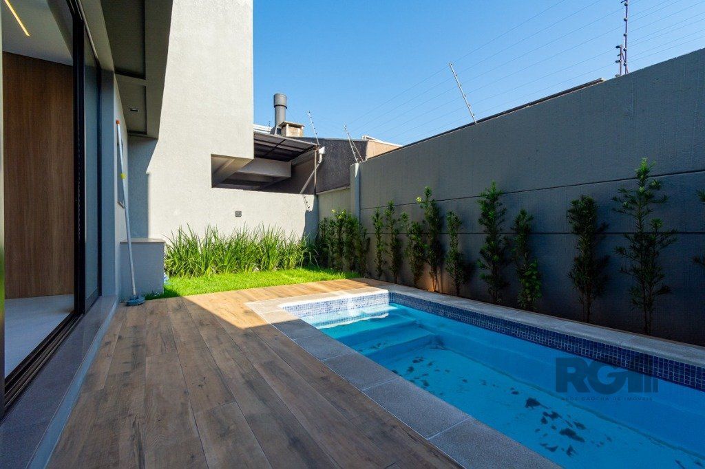São 3 dormitórios com uma suíte master. persianas automatizadas em todos os dormitórios, sala com lareira, lavanderia, lavabo, pátio com piscina, churrasqueira e duas vagas lado a lado.