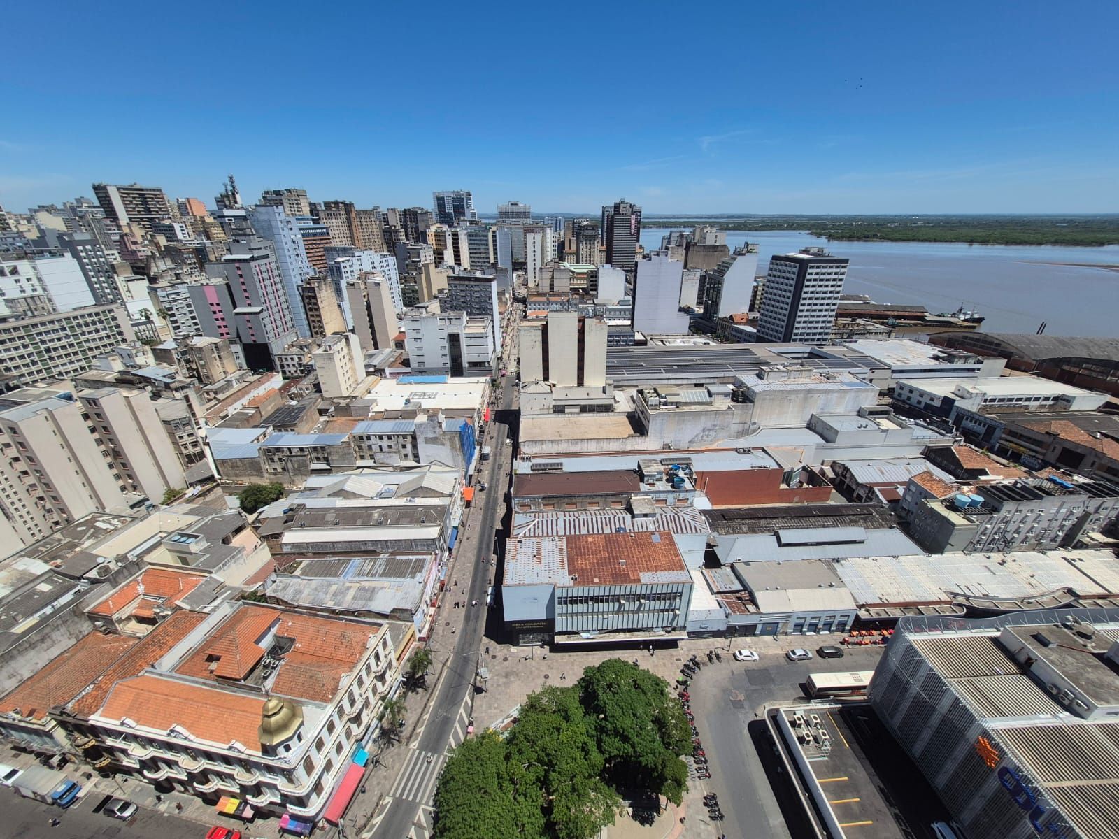 Aluga sala na região central em andar alto com linda vista para o Guaíba, mobiliada, piso cerâmico, banheiro, arejada, iluminada.