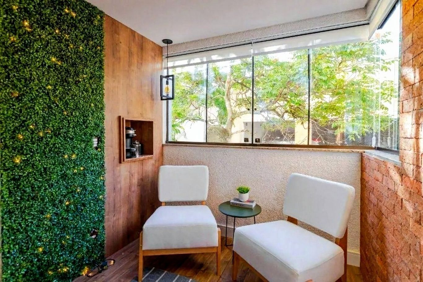 Excelente apartamento semi-mobiliado, com living para dois ambientes, cozinha americana com churrasqueira, área de serviço e banheiros com ventilação natural. Possui 1 vaga de garagem coberta e escriturada.
