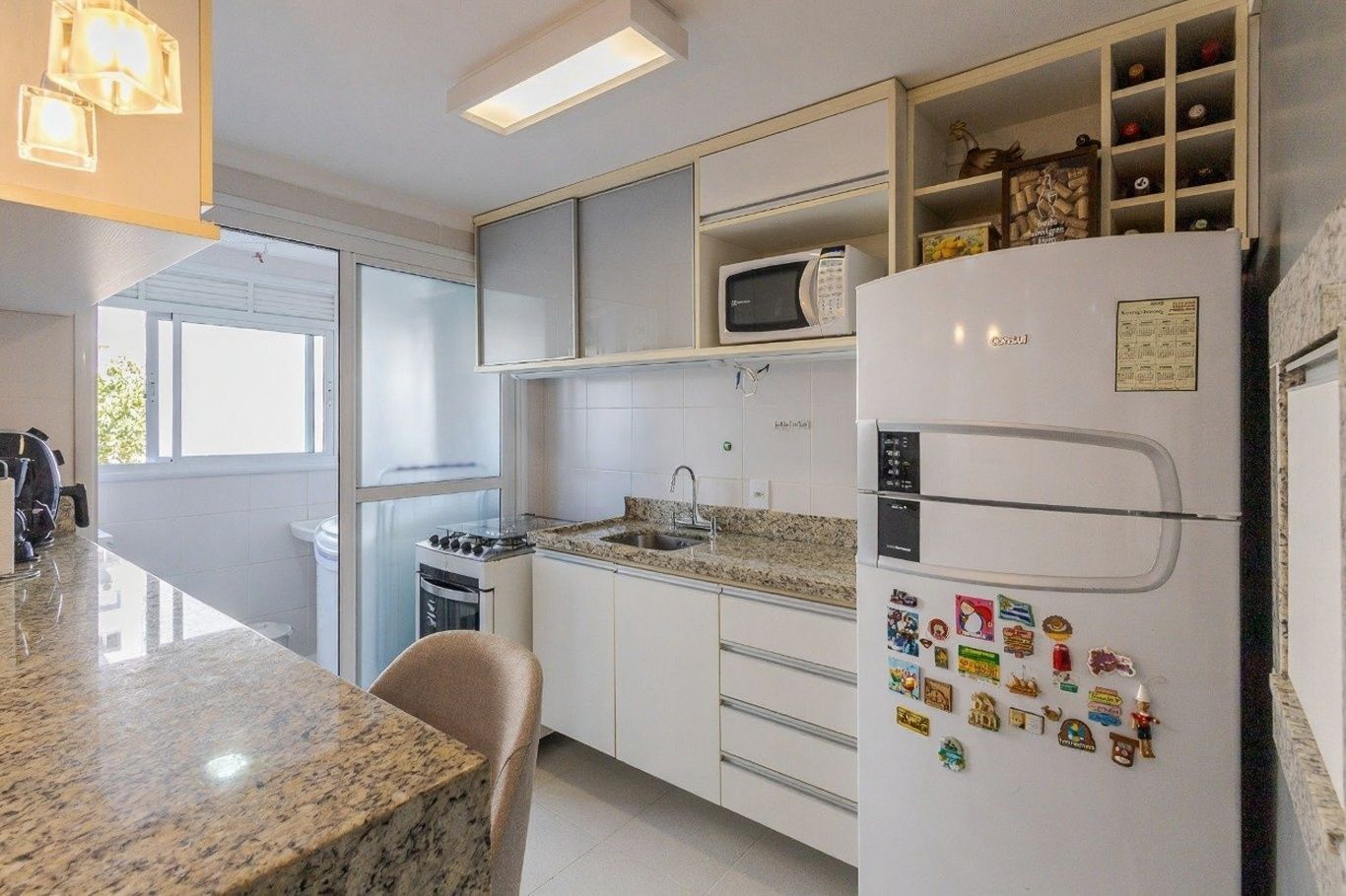 Apartamento moderno e pronto para morar, com 2 dormitórios (1 suíte), living ampliado com sacada integrada, cozinha americana com churrasqueira, área de serviço e 1 vaga coberta e escriturada. Possui móveis sob medida nos dormitórios e ótimo aproveitamento de espaço, garantindo praticidade e conforto no dia a dia.