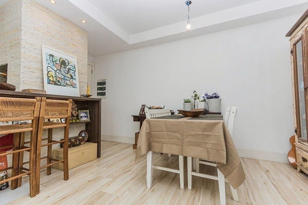 Apartamento semi-mobiliado, composto por 2 dormitórios, sendo 1 suíte com closet, amplo living para 2 ambientes com sacada aberta, cozinha americana montada com churrasqueira e área de serviço separada. O imóvel possui piso laminado, é ensolarado, ventilado e fica em andar alto.