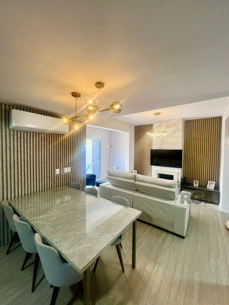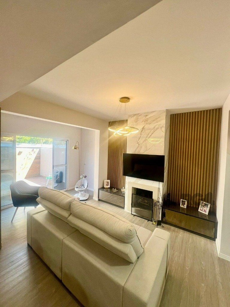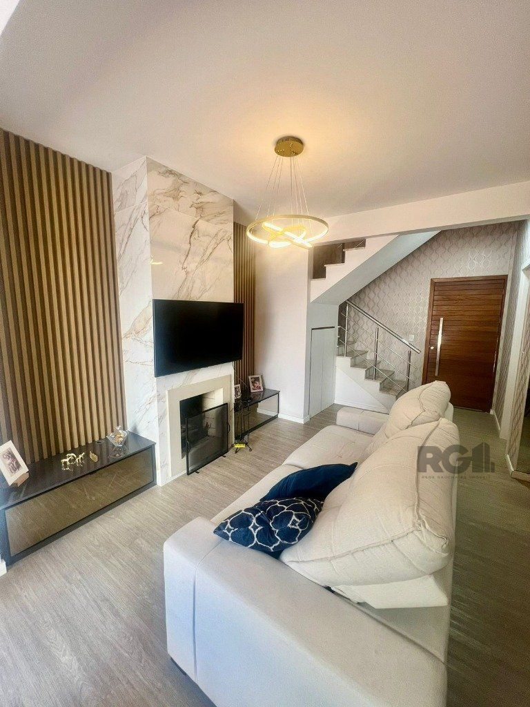 Sobrado com 163m², 3 quartos e 1 suíte, churrasqueira, lareira, área de serviço e amplo pátio. Semi mobiliada e vaga para dois veículos.