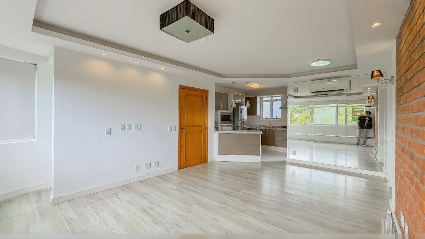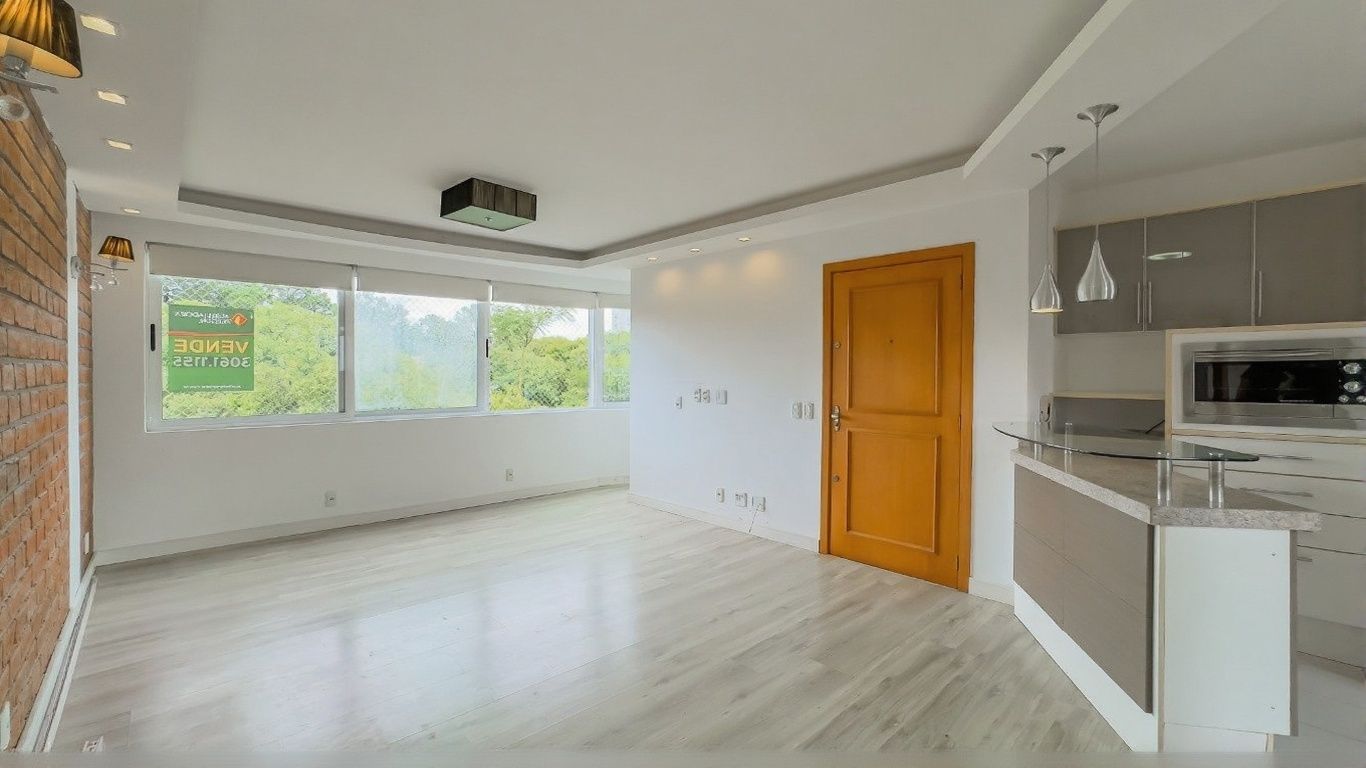 Possui living para dois ambientes com churrasqueira, cozinha americana montada, área de serviço independente com aquecedor instalado e piso em porcelanato em todo o imóvel. Unidade de frente a fundos, com boa circulação interna.