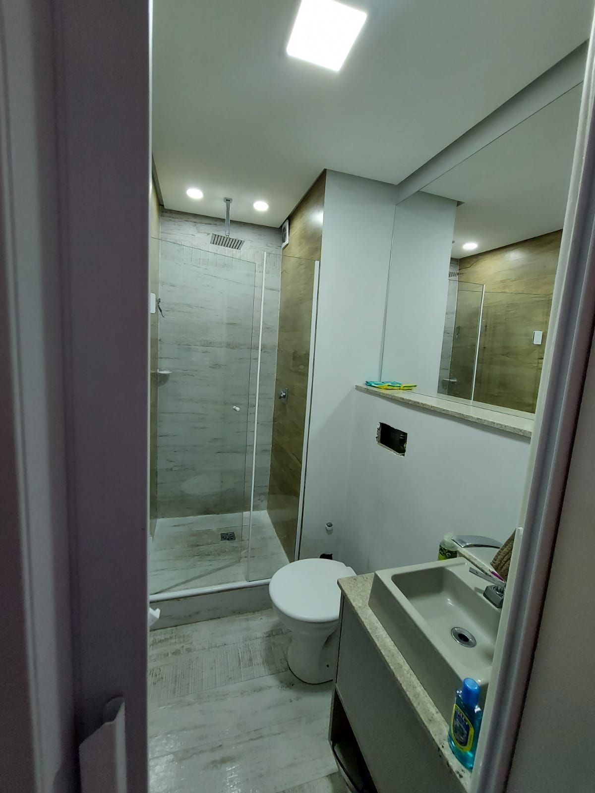 Apartamento de 1 dormitório, sala bem iluminada, ar-condicionado na sala e no quarto, piso em porcelanato, rebaixo em gesso, tomadas inteligentes e aquecedor a gás (Junker). Cozinha e banheiro possuem móveis planejados, oferecendo funcionalidade e ótimo aproveitamento de espaço.
