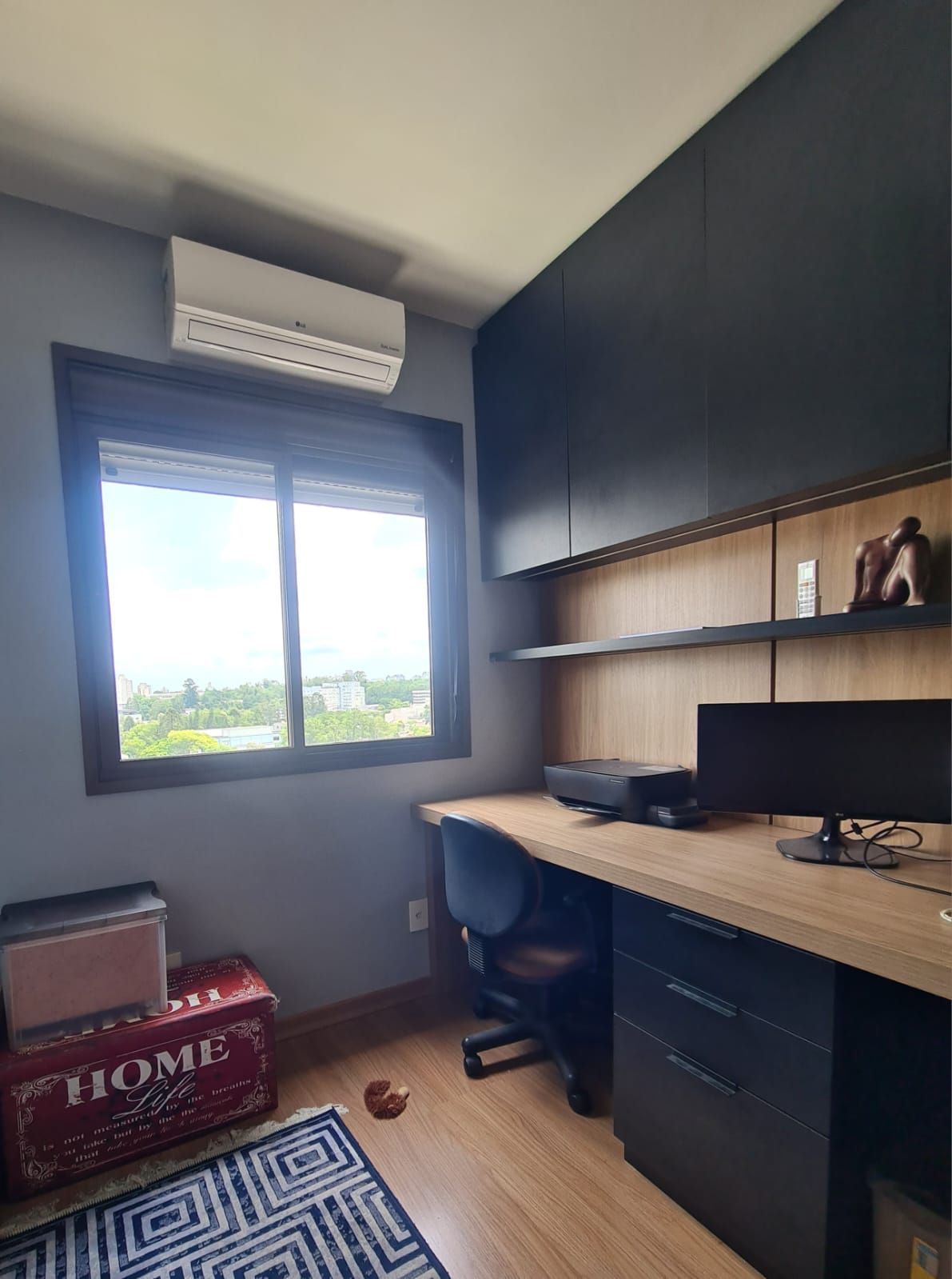 Apartamento semi-mobiliado com 3 quartos, sendo 1 suíte, 71 m² privativos, 2 banheiros e 2 vagas de garagem, localizado no bairro Partenon, em Porto Alegre. O imóvel oferece excelente iluminação natural e ventilação cruzada. Possui sacada, living aconchegante com piso em porcelanato, forro de gesso com sancas e iluminação planejada. A cozinha é integrada em estilo americano, com móveis planejados, e a área de serviço é separada. Conta ainda com água quente em todos os pontos, medição individual de água e gás, banheiros com armários e ótima distribuição dos ambientes.