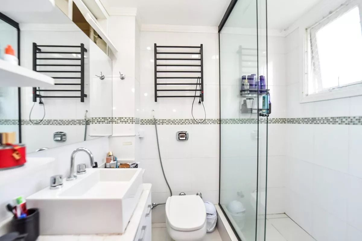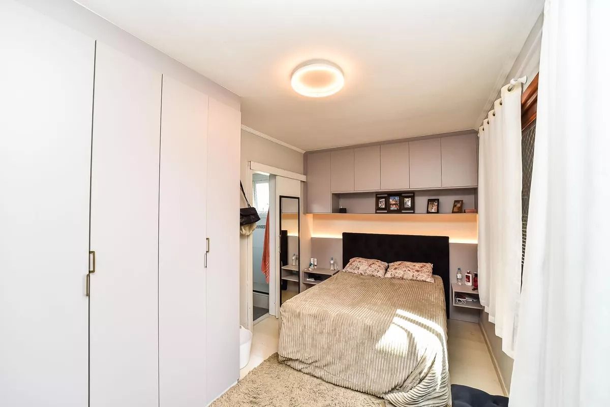 O segundo quarto é iluminado, conta com cama, armários, mesa para computador e janelas grandes. O banheiro auxiliar possui móveis sob medida, armários, box de vidro e janela com abertura para o exterior.