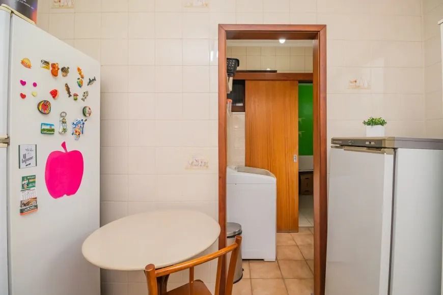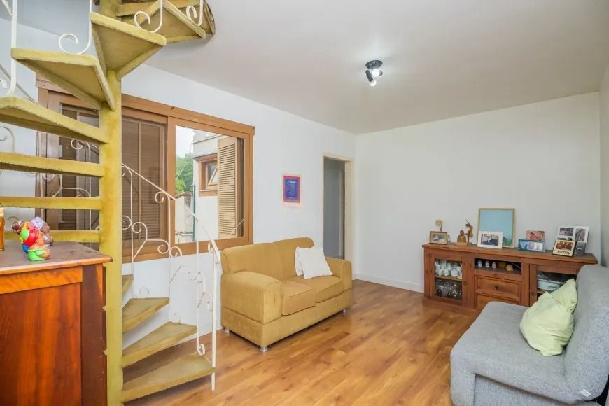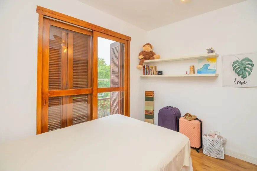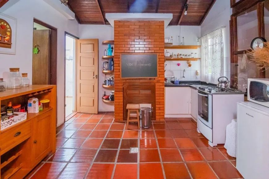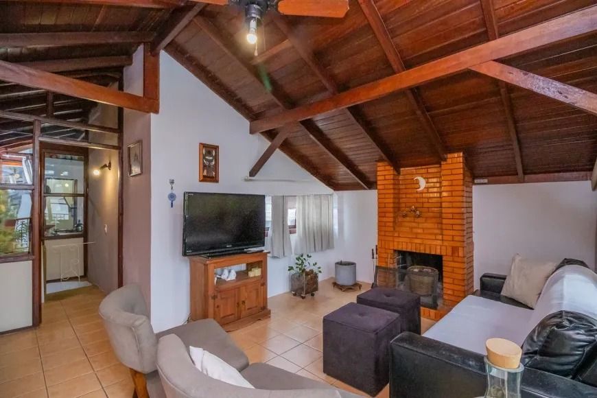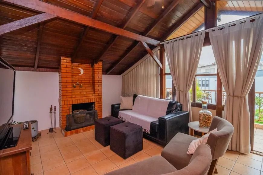 No primeiro pavimento, o imóvel conta com uma confortável sala de estar, dois dormitórios, banheiro social, cozinha e dependência completa. No andar superior, destaca-se a ampla área social, composta por uma espaçosa sala de estar com lareira, sacada, living integrado à sala de jantar com churrasqueira, além de lavabo e lavanderia.