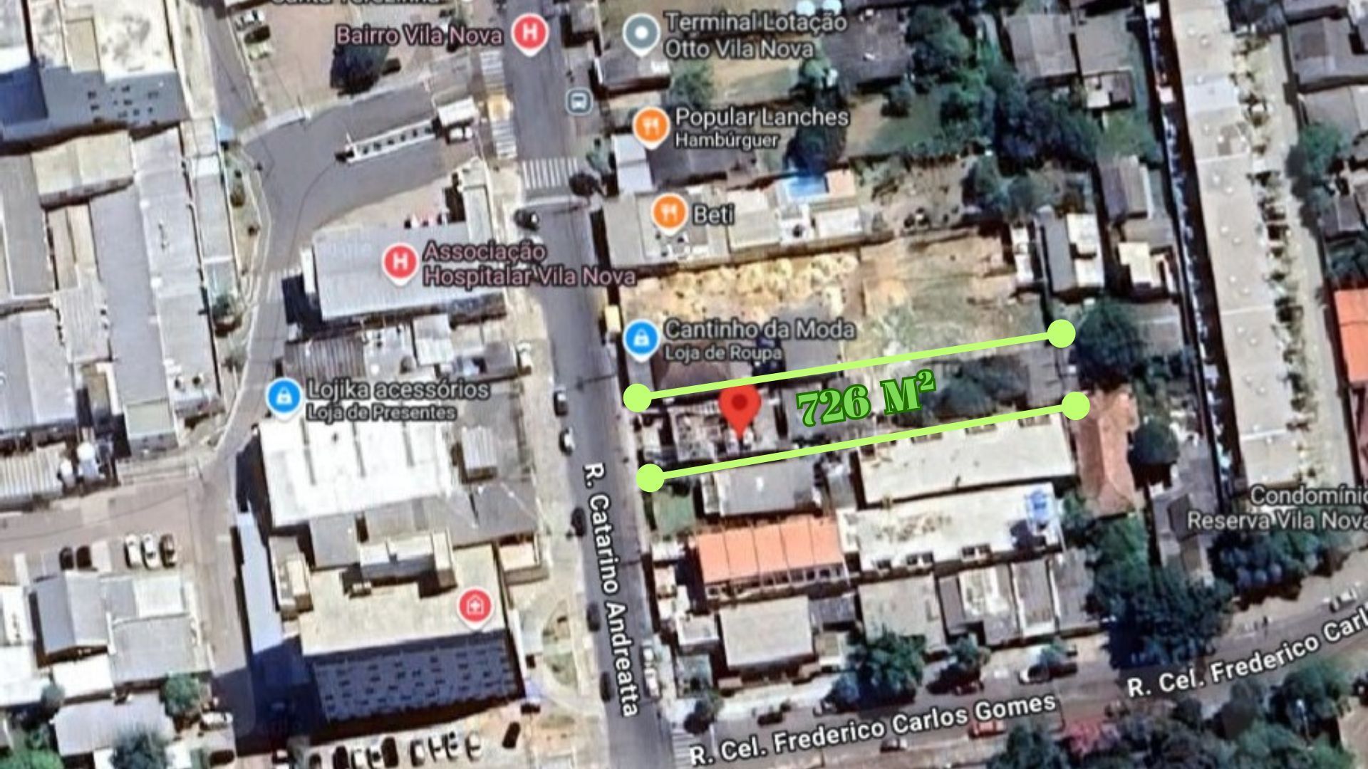 Terreno comercial com 726 metros quadrados no Bairro Vila Nova.