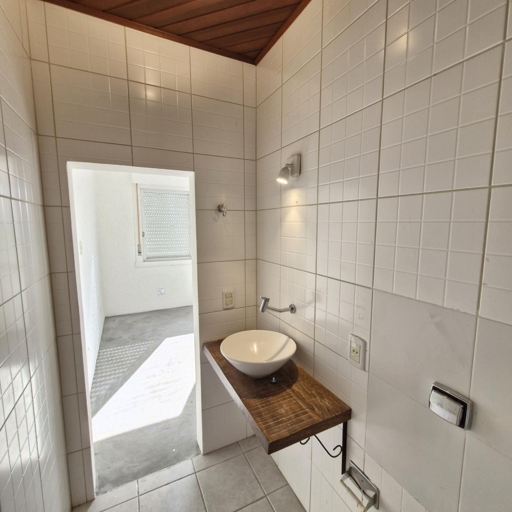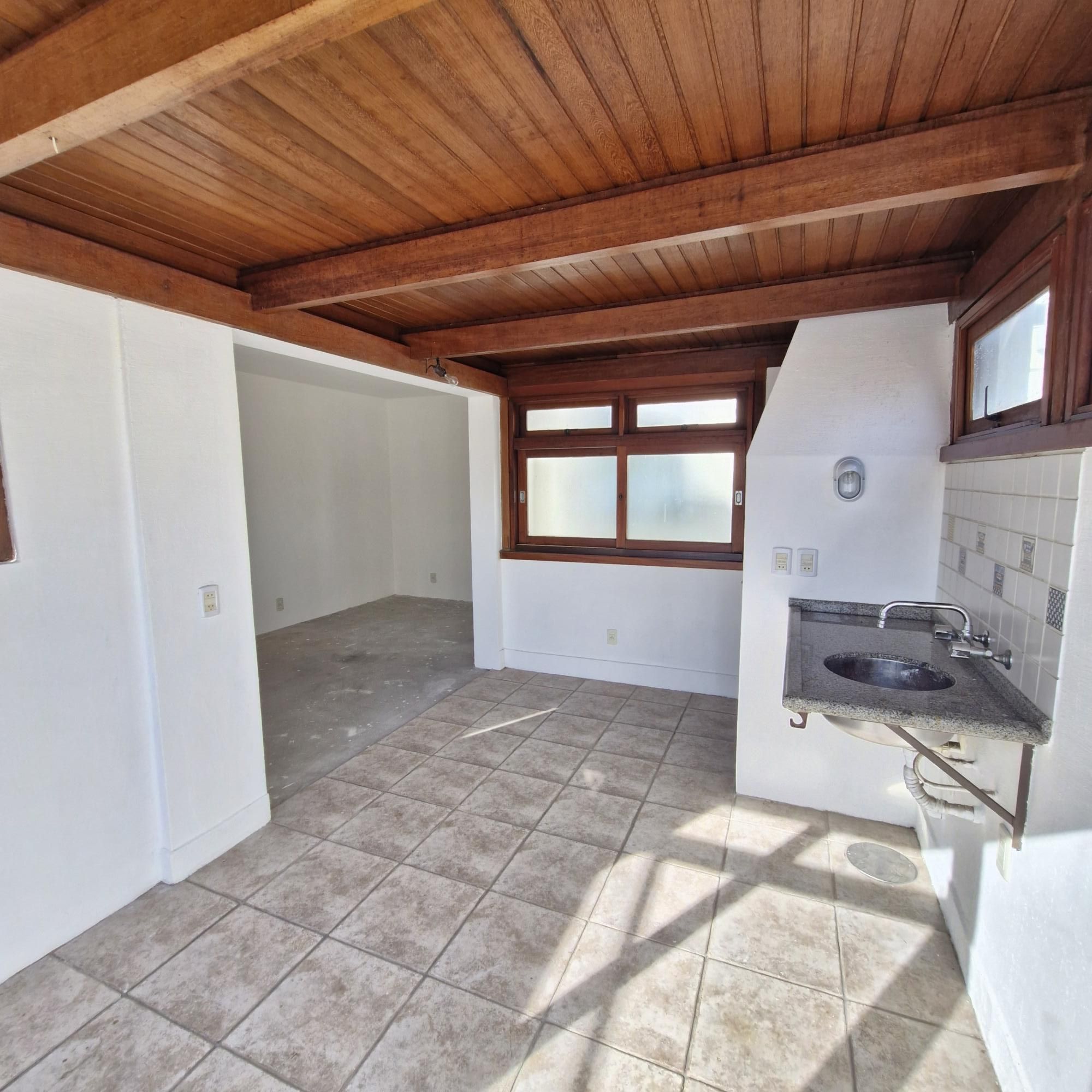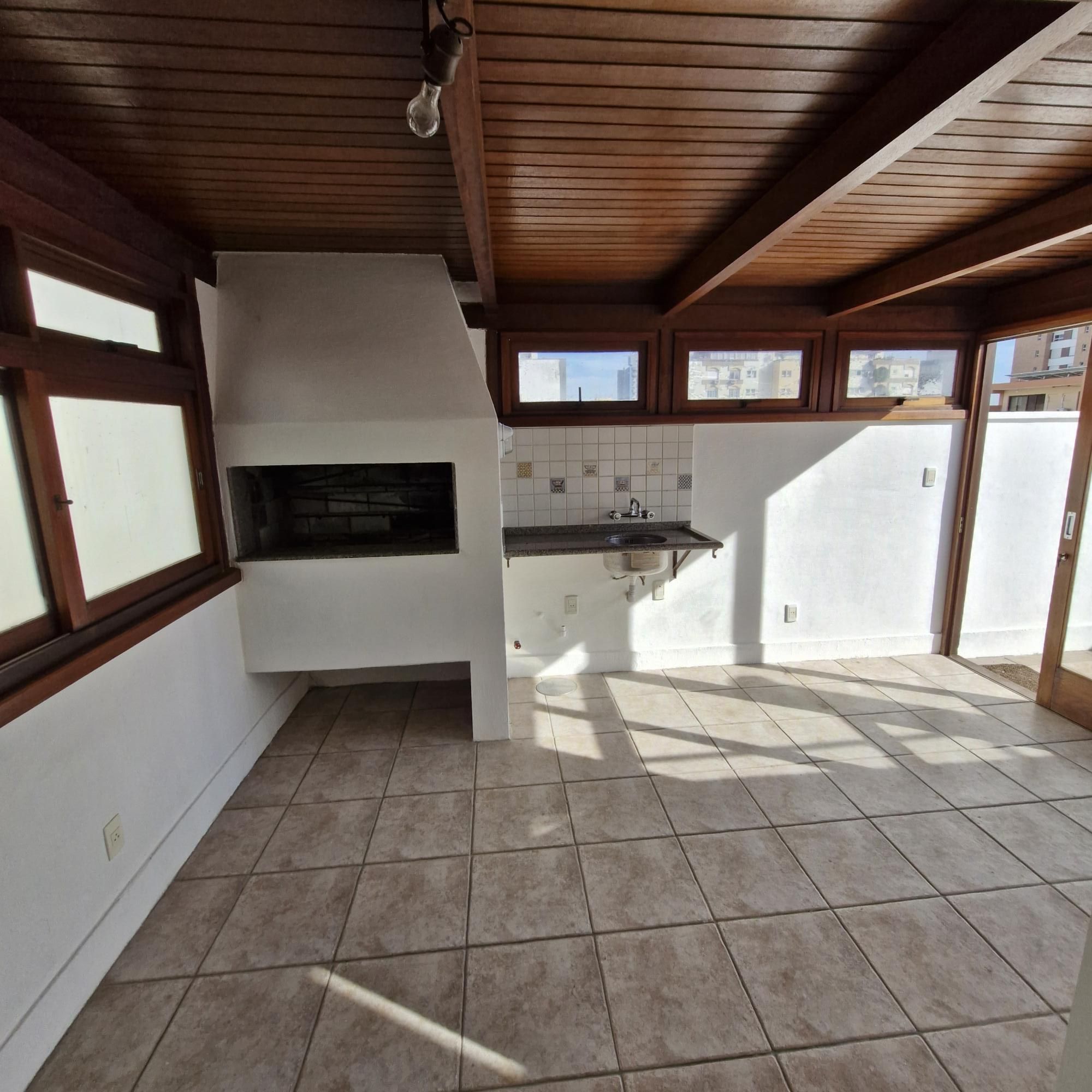 Cobertura com uma suíte com possibilidade para mais dormitório na cobertura, sala e cozinha americana, no andar superior área de serviço com banheiro, espaço gourmet, tudo isso no bairro Menino Deus. Condomínio enxuto, sem elevador, porém possui uma vista panorâmica belíssima do bairro e com toda a infraestrutura pública.