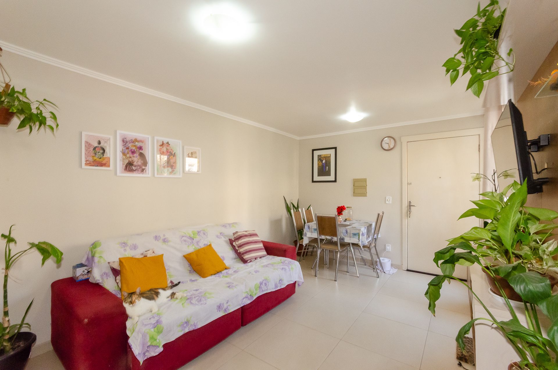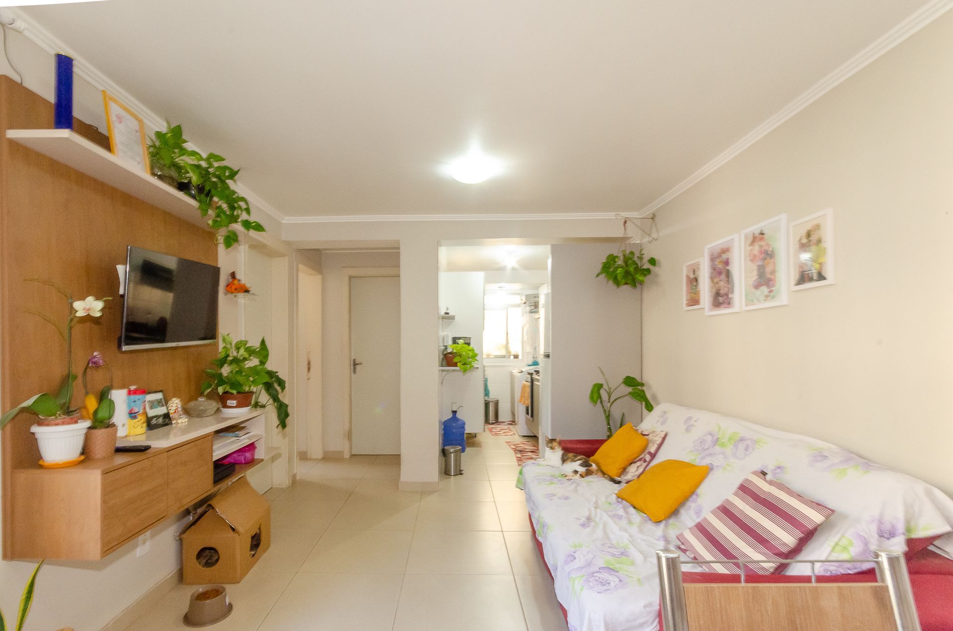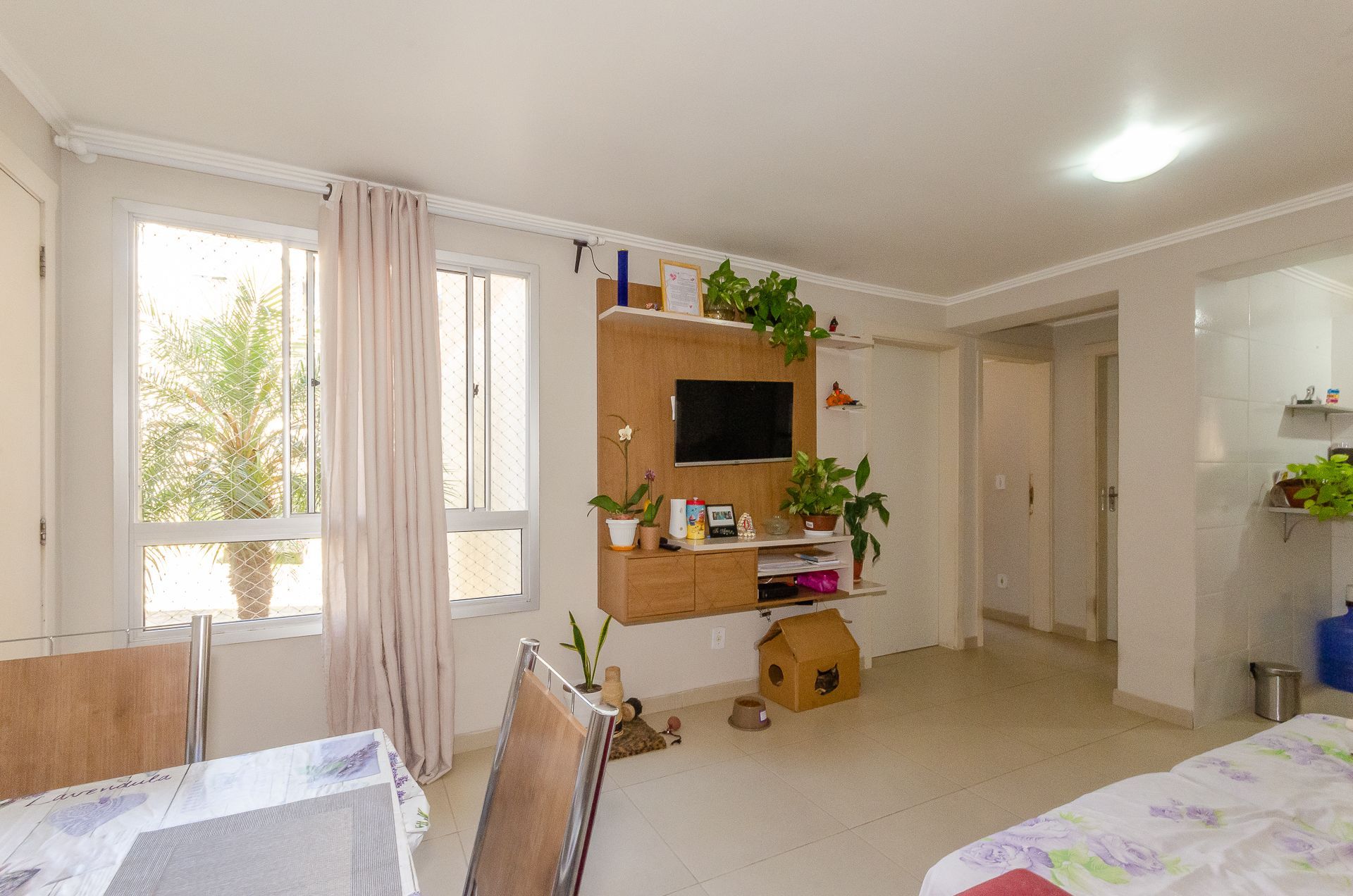 Excelente apartamento na parada 4 da Lomba do Pinheiro em condomínio com infraestrutura. São 2 dormitórios com living para dois ambientes (estar/jantar), cozinha americana, área de serviço, banheiro social com ventilação natural e uma vaga de garagem. Ficam no apartamento os móveis sob medida da cozinha.