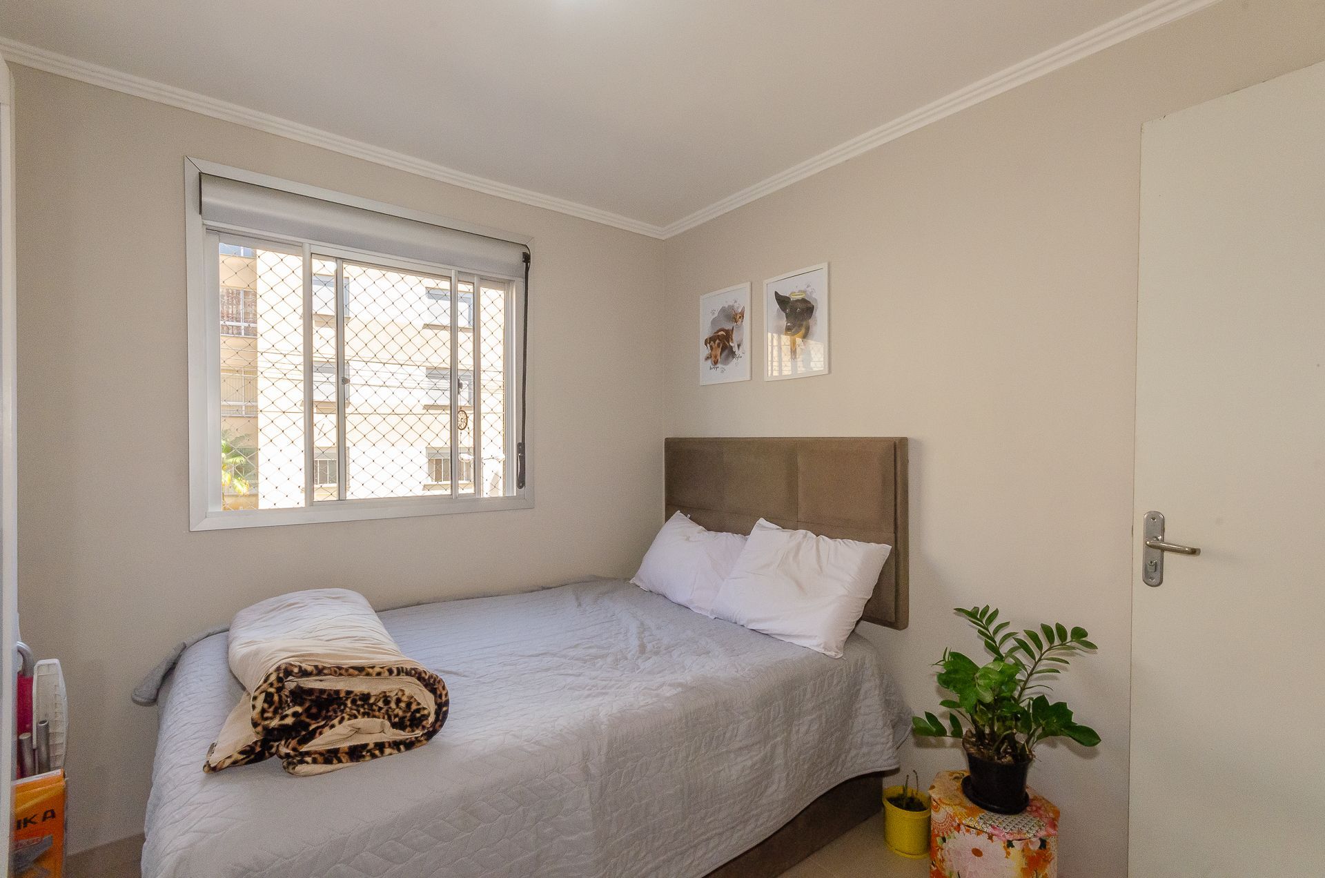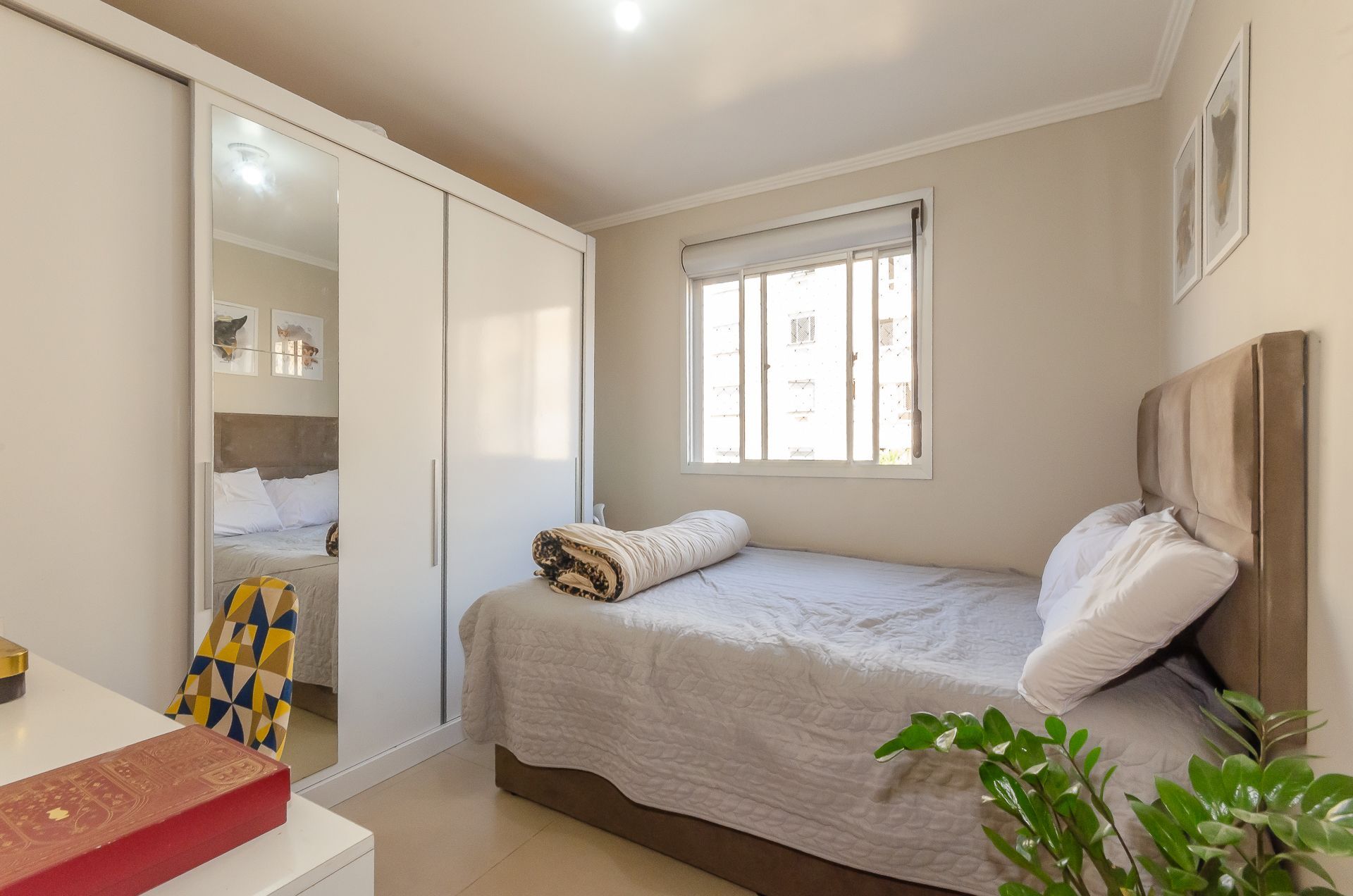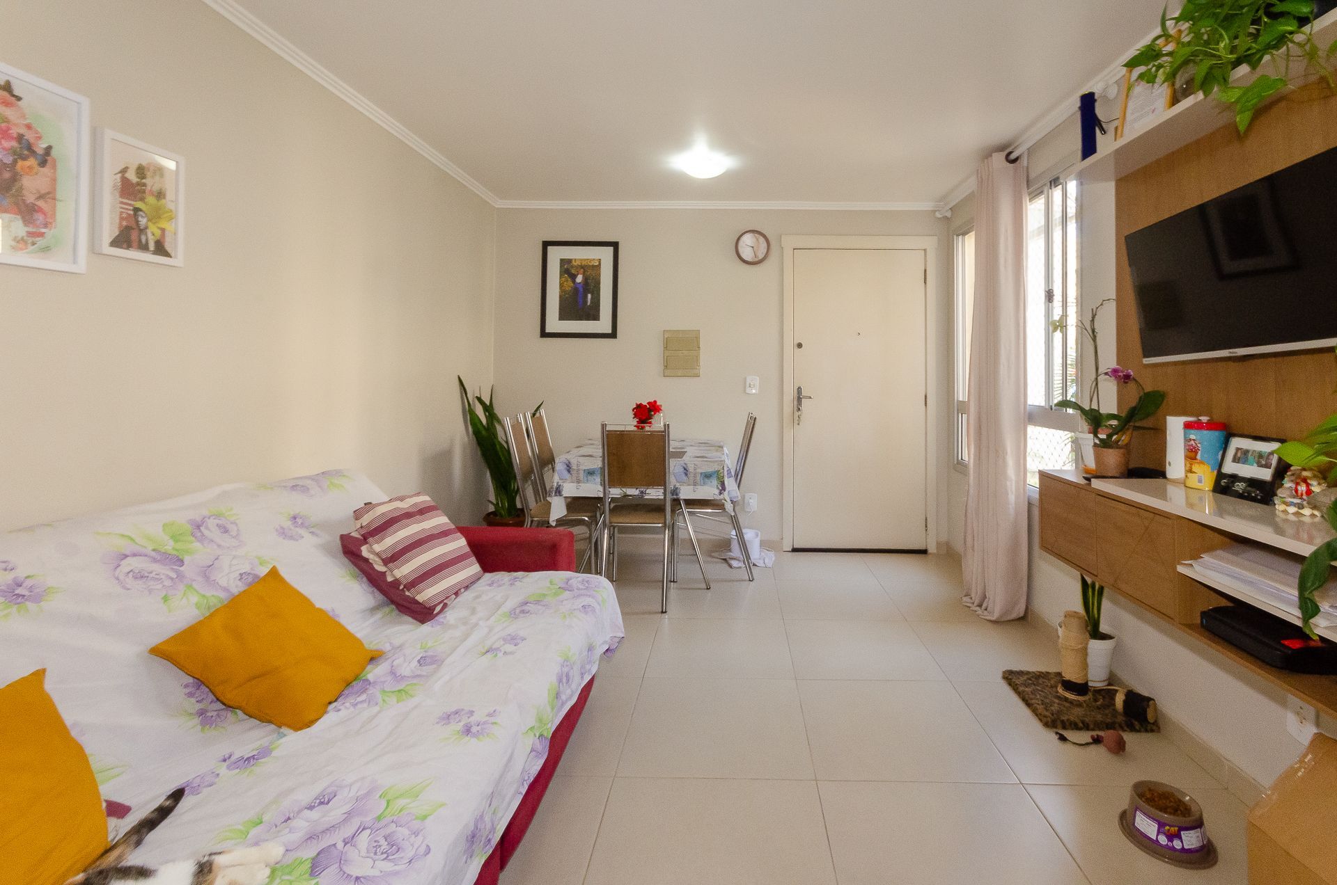Excelente apartamento na parada 4 da Lomba do Pinheiro em condomínio com infraestrutura. São 2 dormitórios com living para dois ambientes (estar/jantar), cozinha americana, área de serviço, banheiro social com ventilação natural e uma vaga de garagem. Ficam no apartamento os móveis sob medida da cozinha.