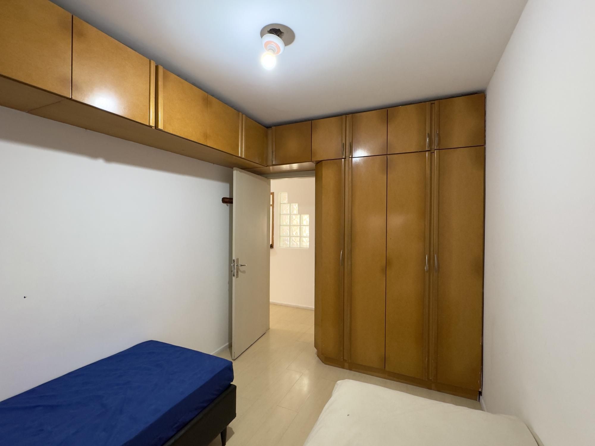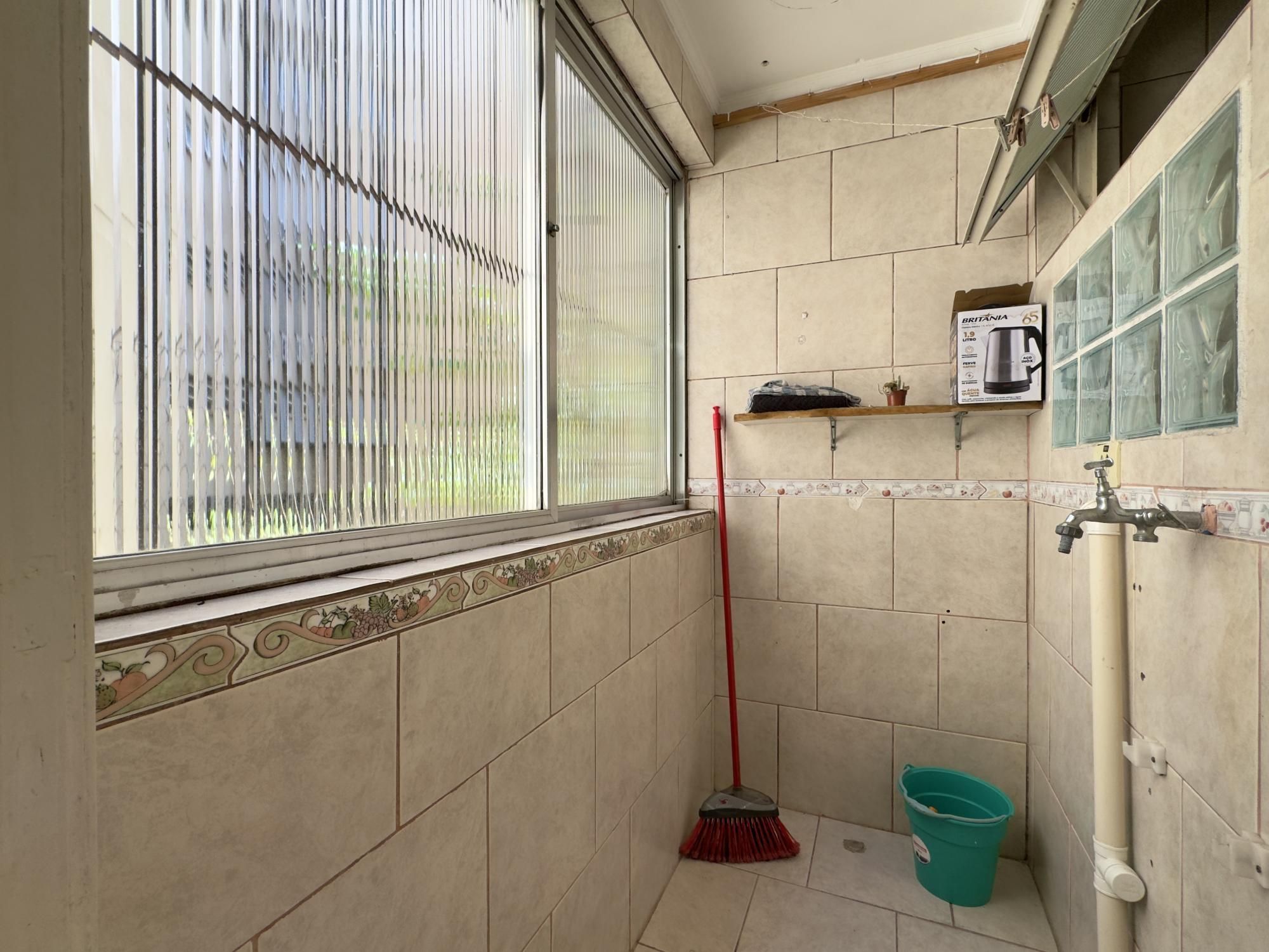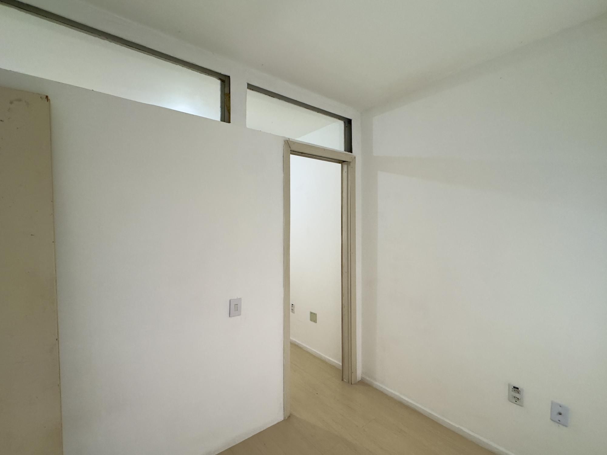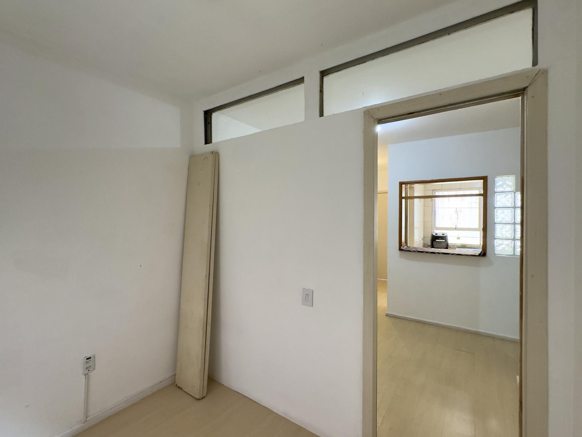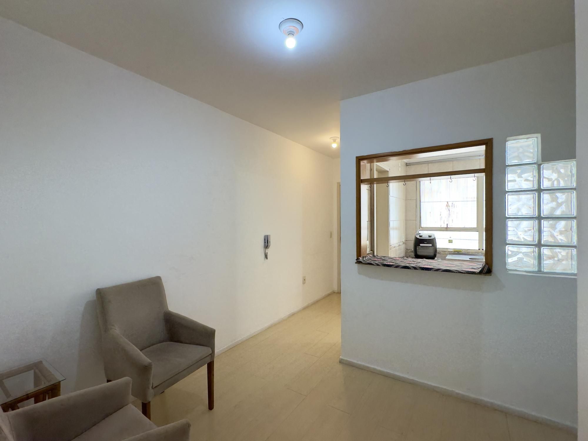 Apartamento semimobiliado de 43m², 1 dormitório transformado em 2 dormitórios, living, cozinha, área de serviço separada e 1 banheiro. A cozinha é espaçosa e possui armários, imóvel silencioso e com orientação solar Norte.