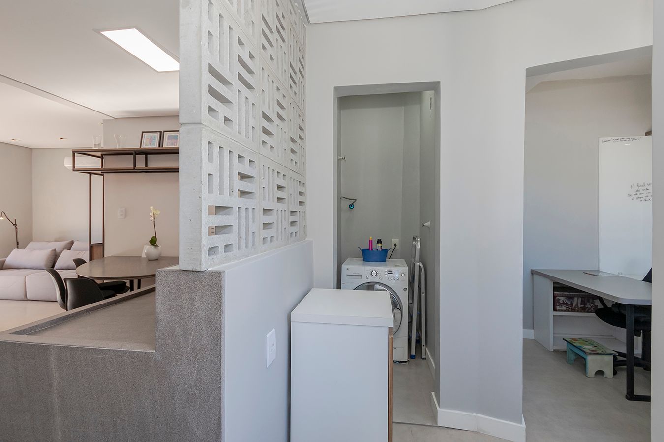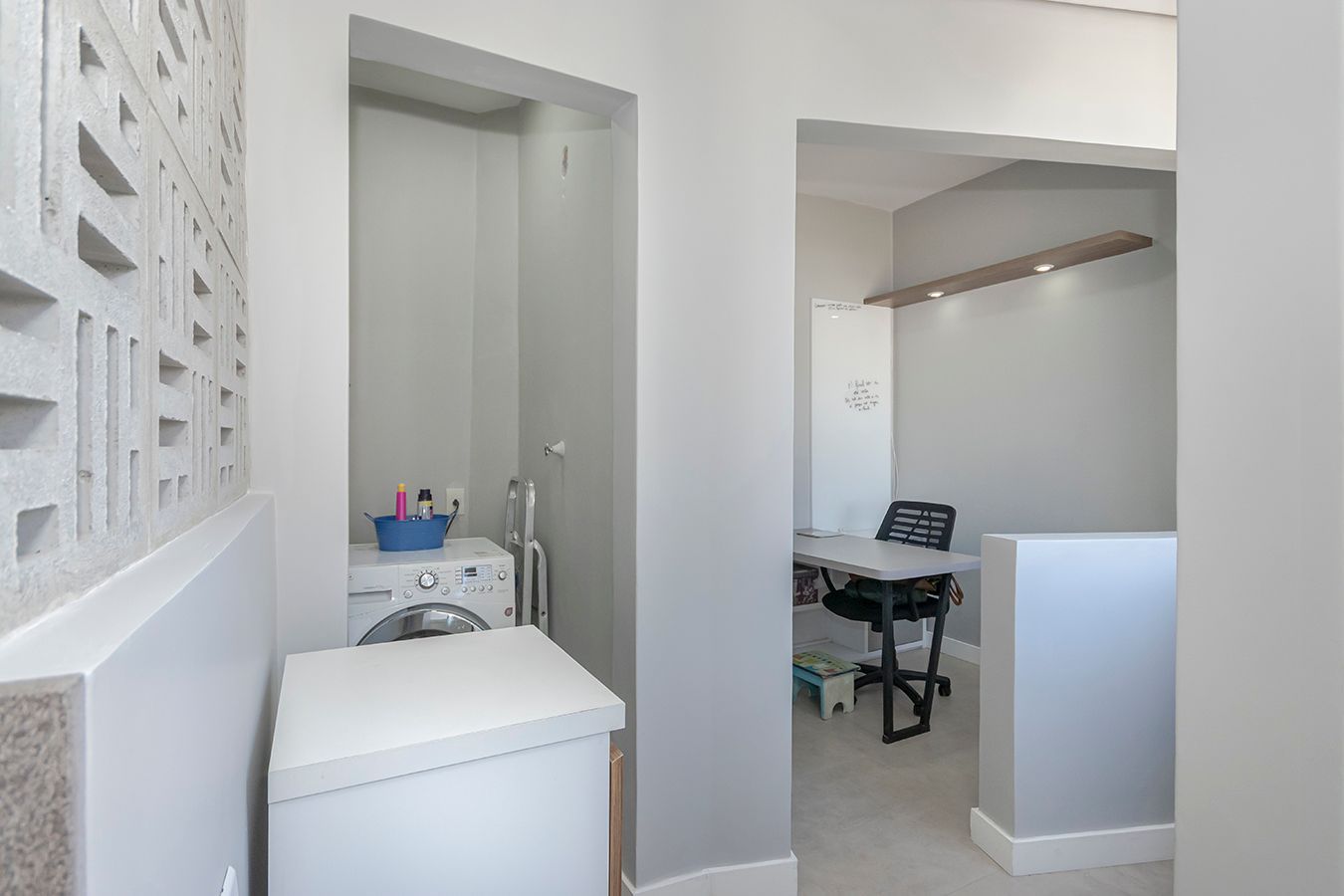 A cozinha americana, com armários planejados, oferece praticidade e funcionalidade, tornando o preparo das refeições uma tarefa prazerosa. Além disso, o imóvel conta com uma lavanderia, banheiro auxiliar e um escritório, oferecendo comodidade para o dia a dia.