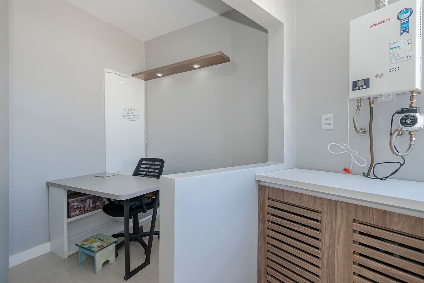 Desfrute de momentos relaxantes na sacada, apreciando a vista e a tranquilidade do entorno. O imóvel também dispõe de aquecimento a gás, ar condicionado e luminárias, garantindo conforto em todas as estações do ano.