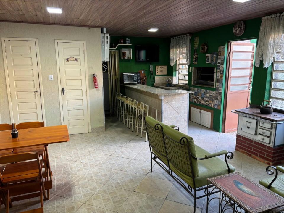 A área social é acolhedora, com sala de estar equipada com lareira, e a cozinha espaçosa integra-se a uma extensão gourmet completa, com churrasqueira e bancada, ideal para receber amigos e familiares.