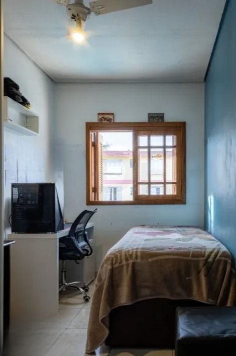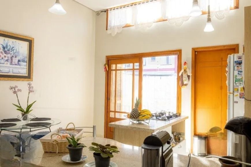 Sobrado no bairro Partenon com 3 dormitórios, sendo 1 suíte, distribuído em dois andares. Possui sala de estar, lavabo, cozinha americana mobiliada, área de serviço e banheiro social. Conta ainda com amplo pátio com piscina, anexo com churrasqueira, dormitório e banheiro, além de espaço para até 4 carros.