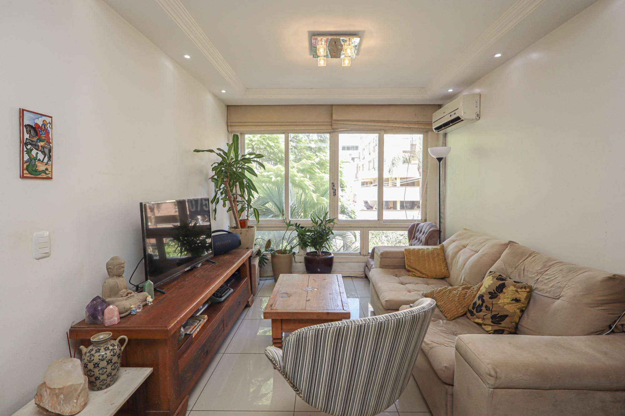 Apartamento semimobiliado com 103 m² de área privativa com 3 dormitórios sendo 1 suíte, banheiro social, living amplo para 2 ambientes, cozinha montada com área de serviço individual, dependência de empregada com banheiro auxiliar. Possui 1 vaga de garagem coberta e escriturada.