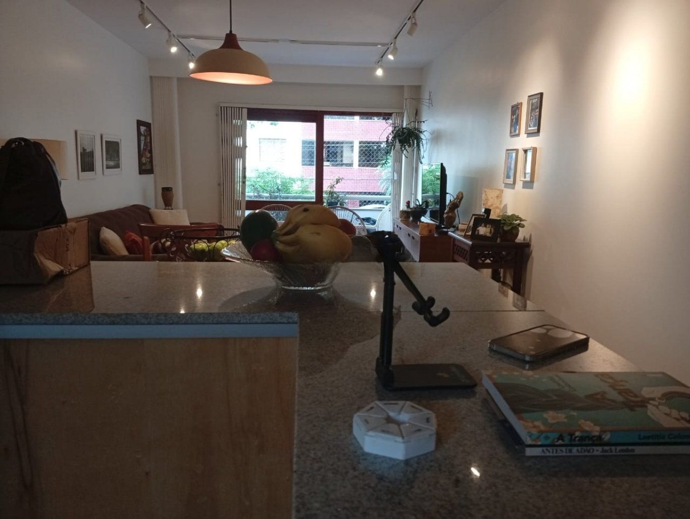 Living Amplo: 3 ambientes bem definidos com lareira aconchegante e sacada integrada.