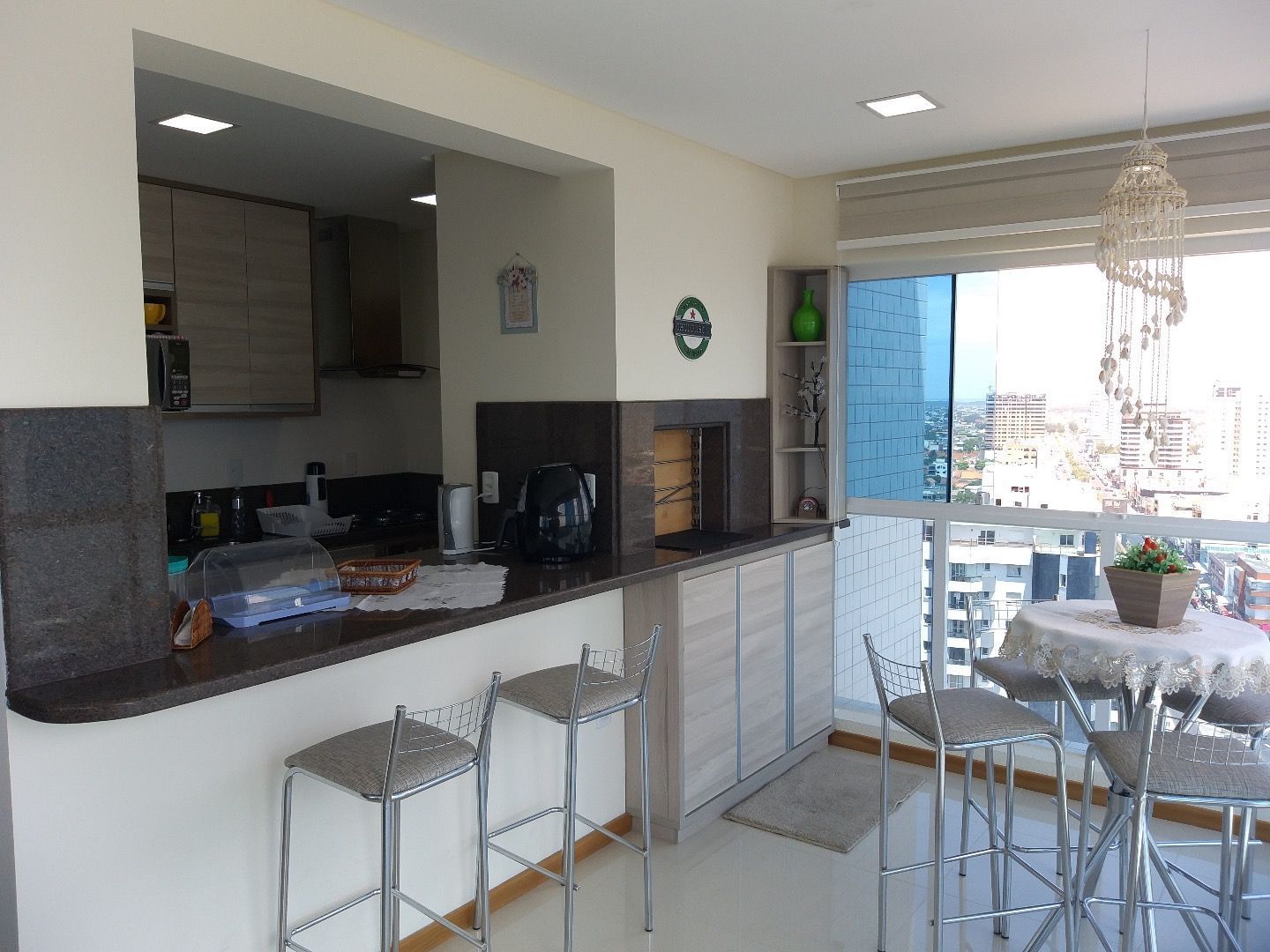 Imóvel em andar alto, arejado e muito bem localizado; possui 124m2, 2 vagas de garagem, amplo living, churrasqueira, lavabo, 3 dormitórios sendo 1 suíte, e 2 com suíte americana. Sua cozinha é integrada a área de serviço.