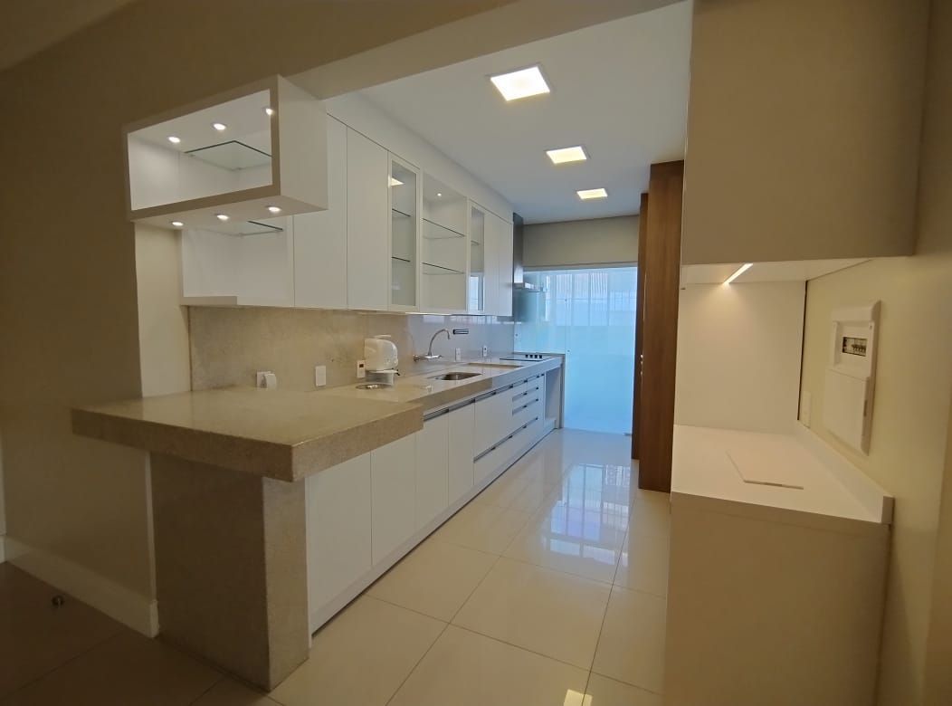 Conta com um amplo living para 2 ambientes, cozinha mobiliada, área de serviço independente.