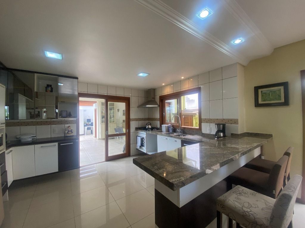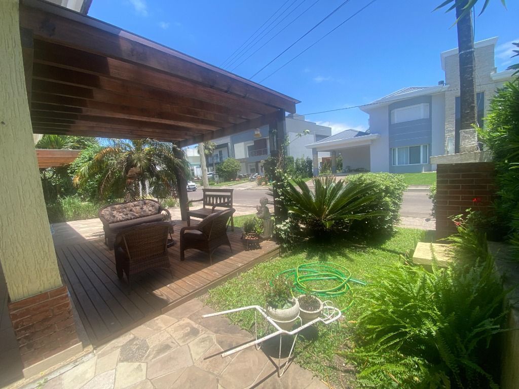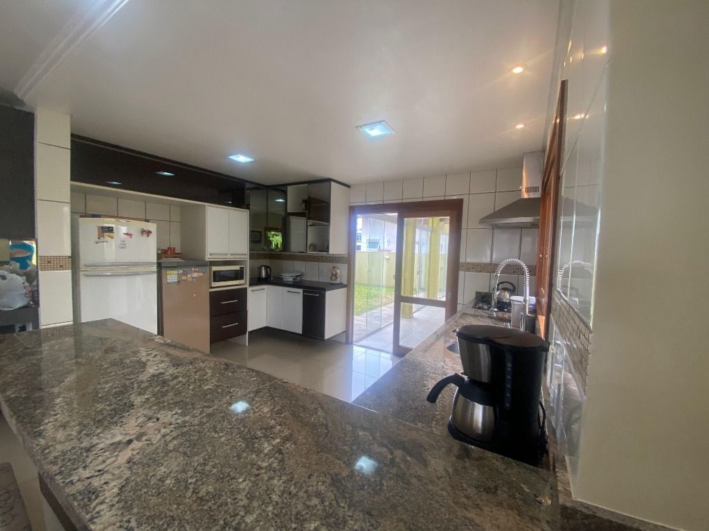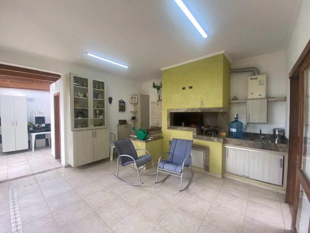 Casa de alvenaria construída em 2008, com 300 m² de área privativa, à venda mobiliada e com eletrodomésticos. Possui depósito, armários externos, forno a lenha, churrasqueira, duas vagas cobertas, portões laterais para pets e lavanderia ampla. Banheiros com água quente e chuveiro elétrico. Suíte master de 35 m² com armário sob medida, frigobar e TV. Sala com TV smart e lareira. Suítes com mesa auxiliar para home office e ar condicionado quente/frio. Suíte no térreo adaptada para pessoas com mobilidade reduzida, com barras de apoio e ventilador de teto.condomínio: Infra estrutura do condomínio(Piscina/Academia/Salão Festas): Salão de festas, lago artificial, piscina, quadras de tênis, futebol, bocha, academia, supermercado Maxx Ideal, Restaurante e Quiosque Bali, quadra de Beach Tênis, lago de pesca, pista de skate, piscina térmica *) O que tem próximo ao condomínio(mercado/farmácia/banco): Havan, Stock Center, Fórum