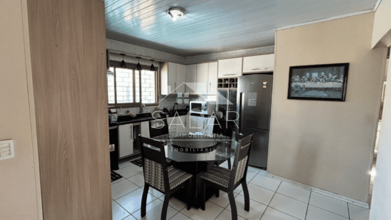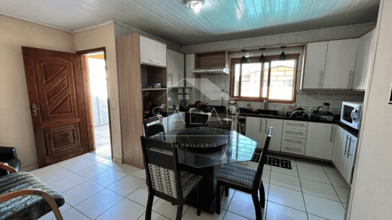 Terreno com 2 (duas) casas. Frente: casa com 119,46m² privativos com sótão, 03 (três) dormitórios, sala estar ampla, cozinha com móveis planejados, banheiro social. Fundos: casa com 96,01m2 privativos, 03 (três) dormitórios, espaço para fazer banheiro para ficar suíte, cozinha integrada área gourmet, garagem fechada 1 carro, área de serviço. Piscina no terreno. Localizado próximo a estação do trem Niterói, farmácias, escola, lotérica, lojas em geral, a uma quadra da Júlio de Castilhos, fácil acesso a BR116. Agende sua visita conosco!