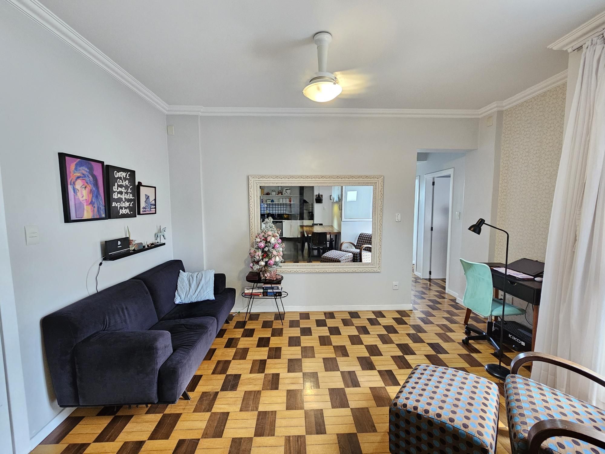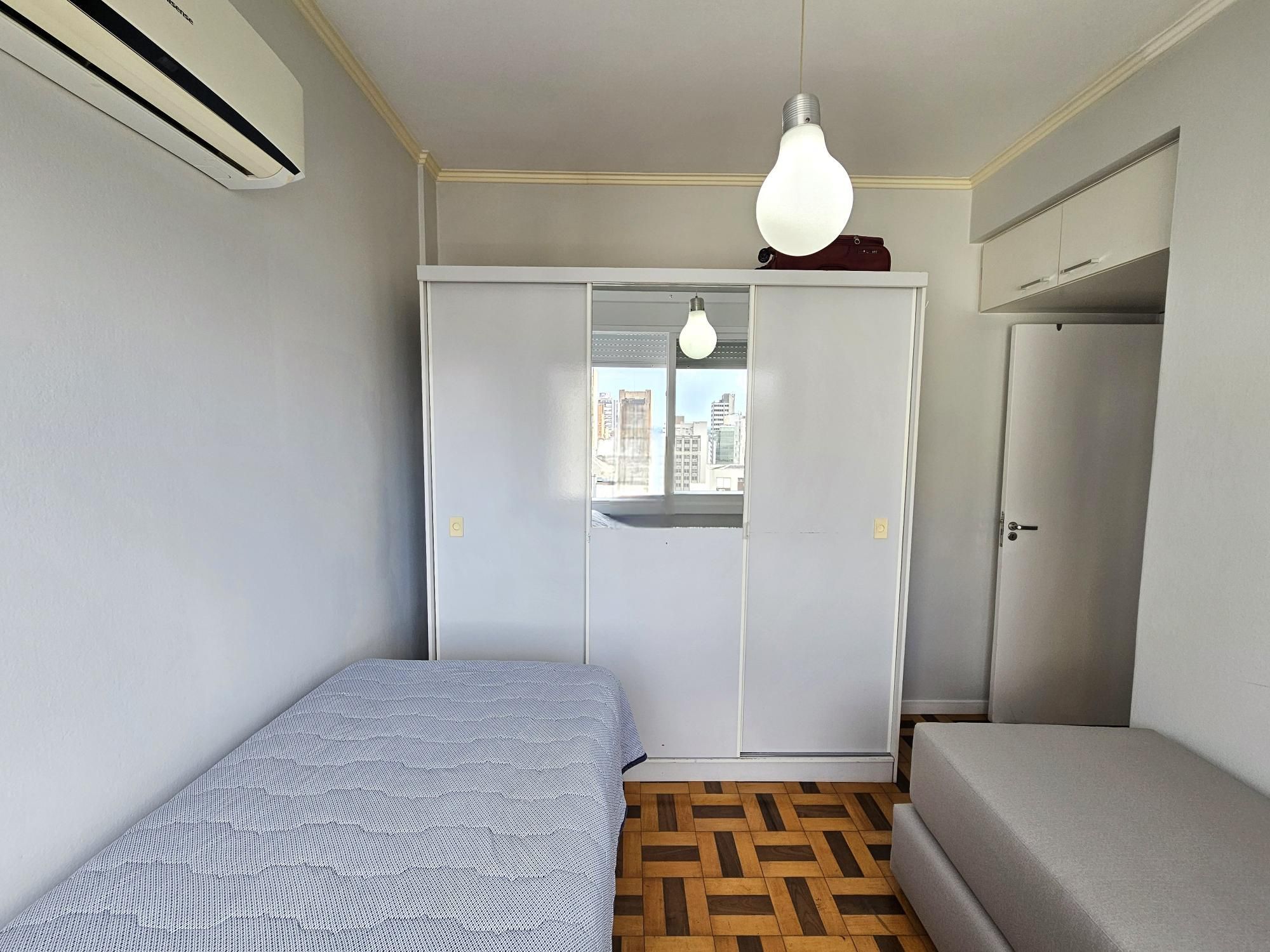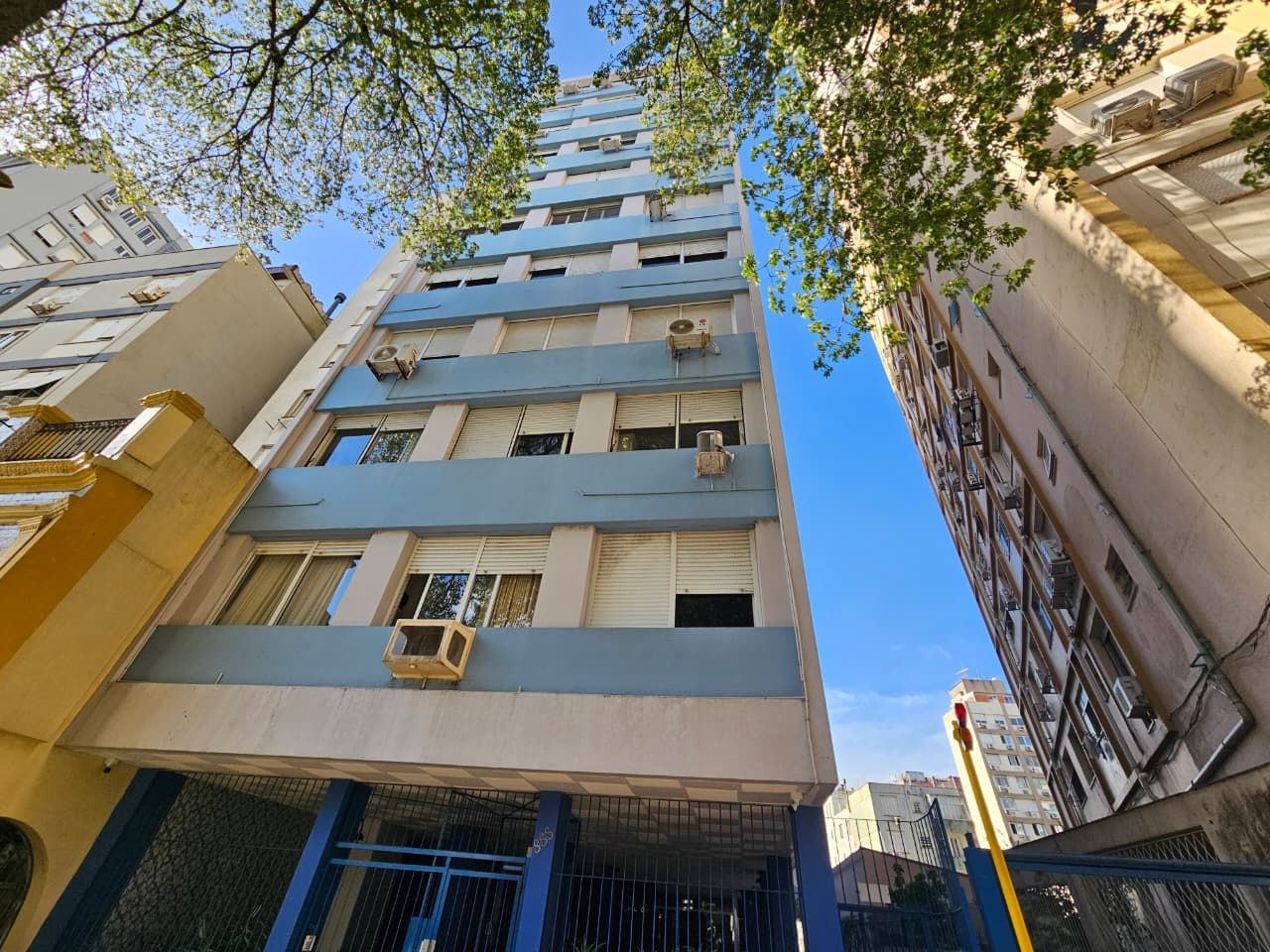 Apartamento Centro Histórico de Porto Alegre: Living com cozinha integrado, área de serviço e banheiro auxiliar com chuveiro. Parte íntima com dois dormitórios, sendo um deles com vista para o Guaíba, amplo banheiro social. Uma vaga de garagem escriturada. Prédio com portaria 24hs e dois elevadores. Ao lado da Assembleia Legislativa e nova orla do Guaíba.