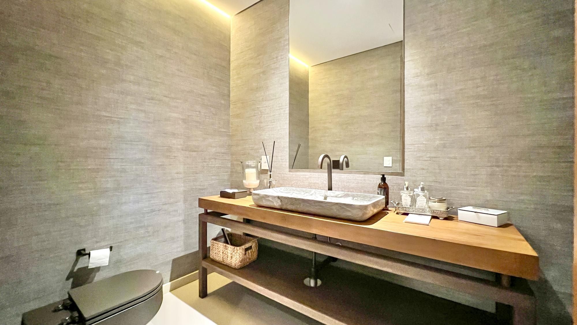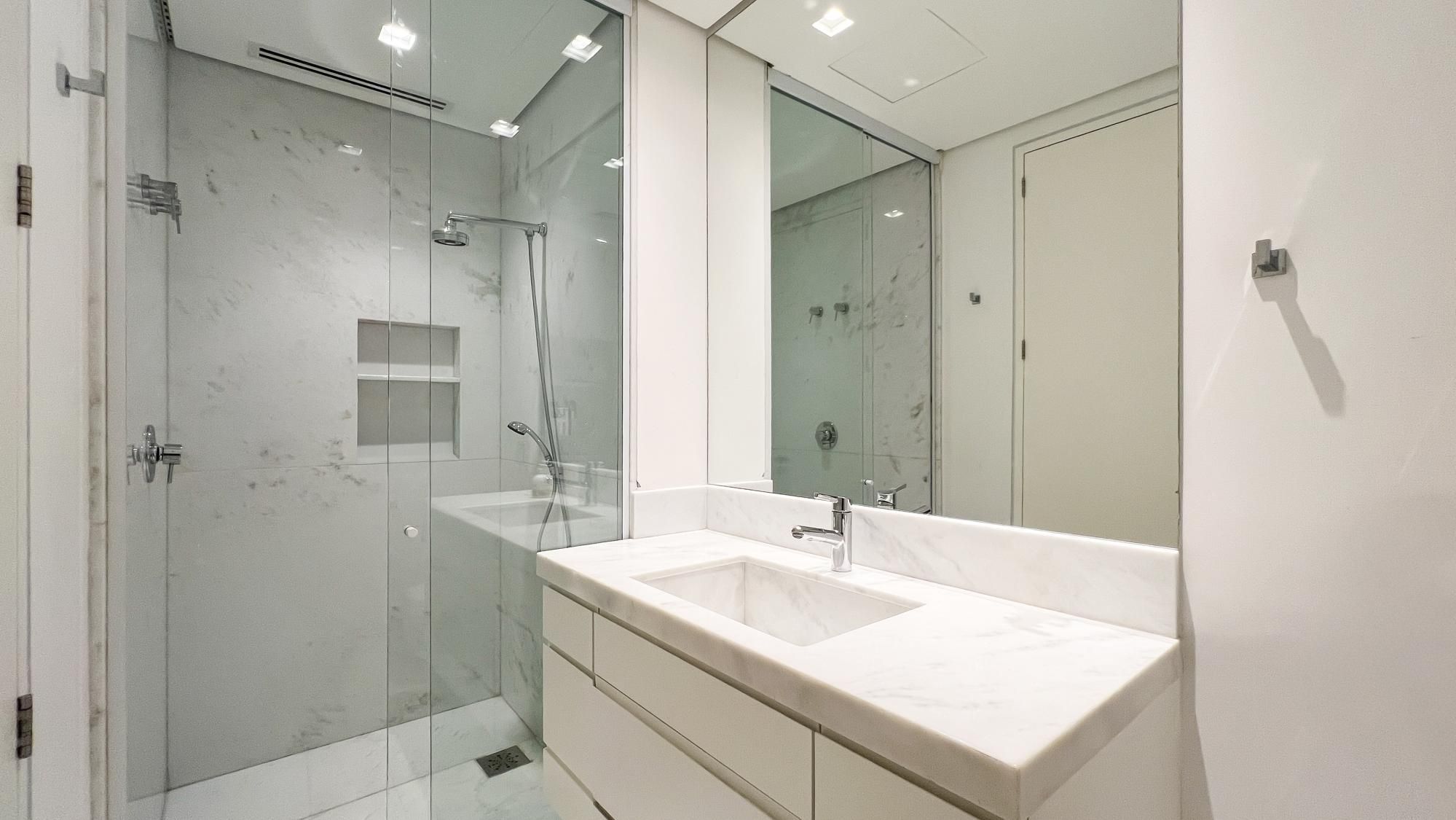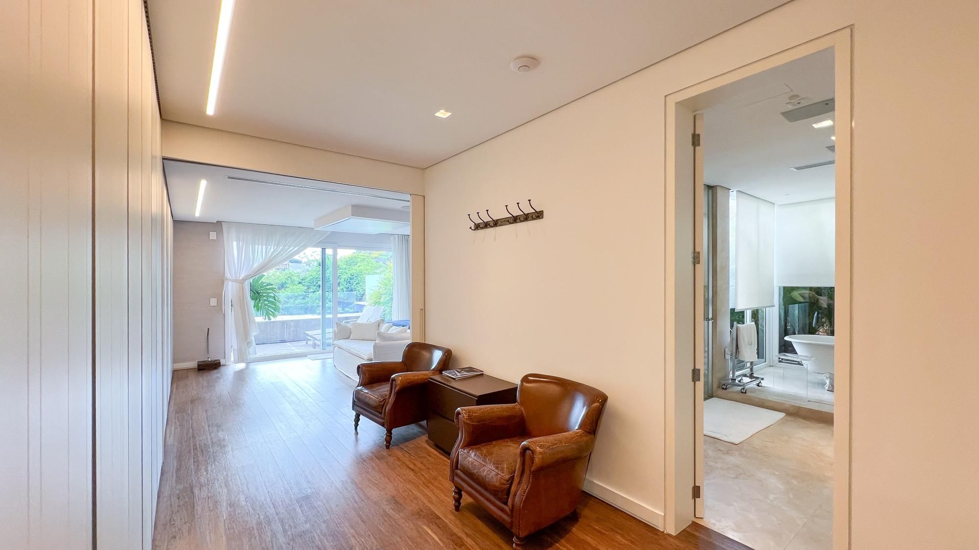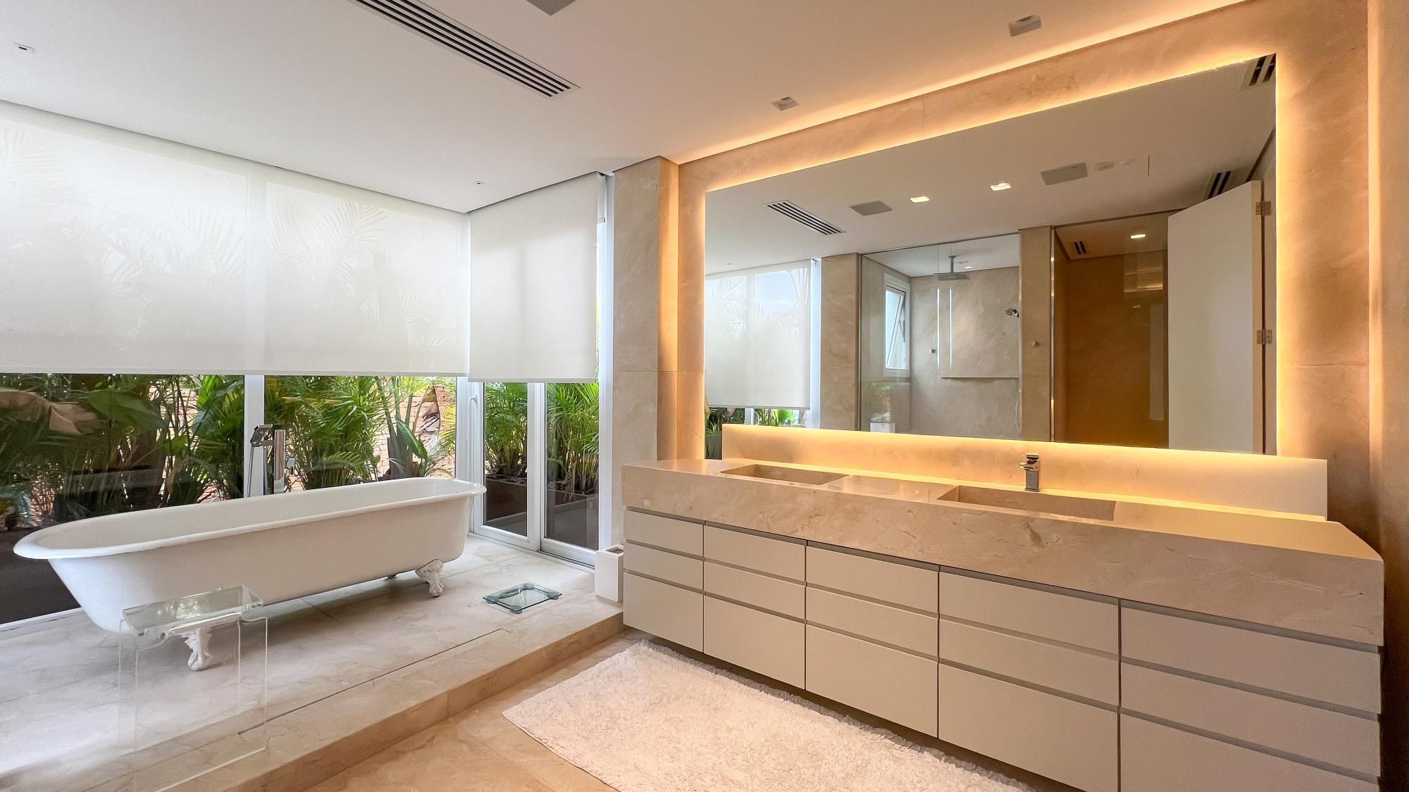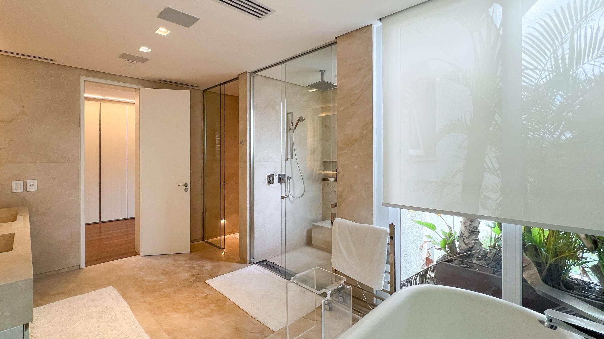 A área social é um espetáculo à parte: espaço gourmet integrado ao terraço e à piscina com raia aquecida de 25 metros, tudo voltado para a mata nativa — um cenário de privacidade e serenidade.