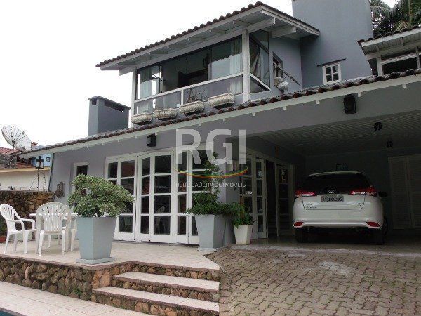 Espaçosa residência de 3 dormitórios, sendo 02 deles suítes, living 2 ambientes c/lareira (em tabuão), lavabo, sala de jantar, jardim de inverno, copa/cozinha e dependência de empregada.
