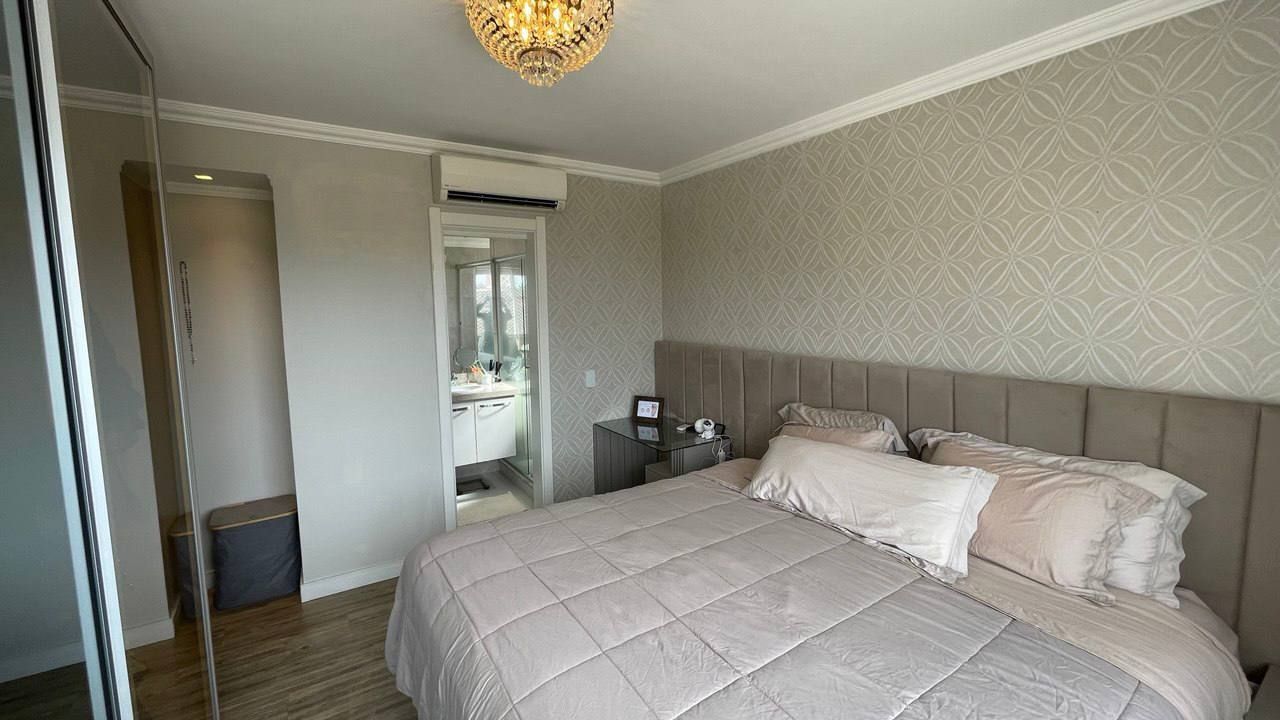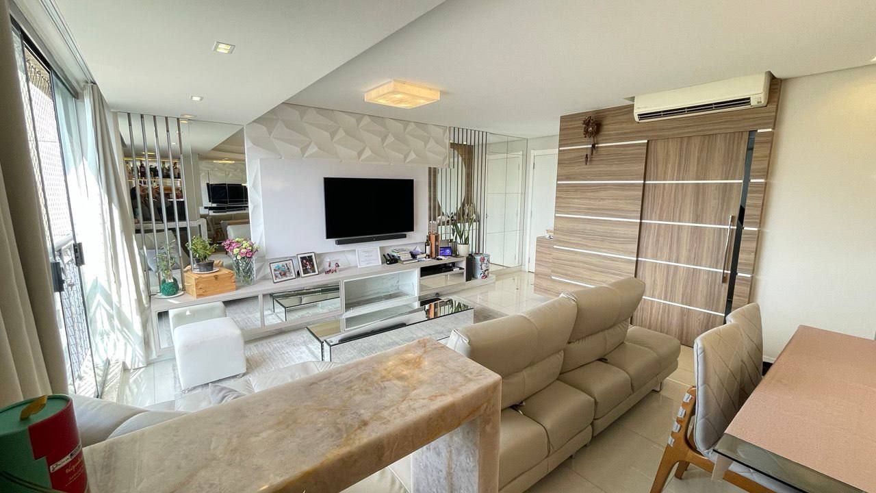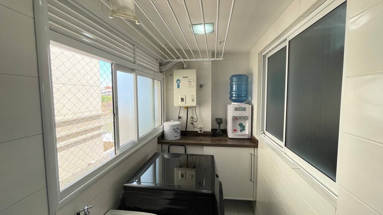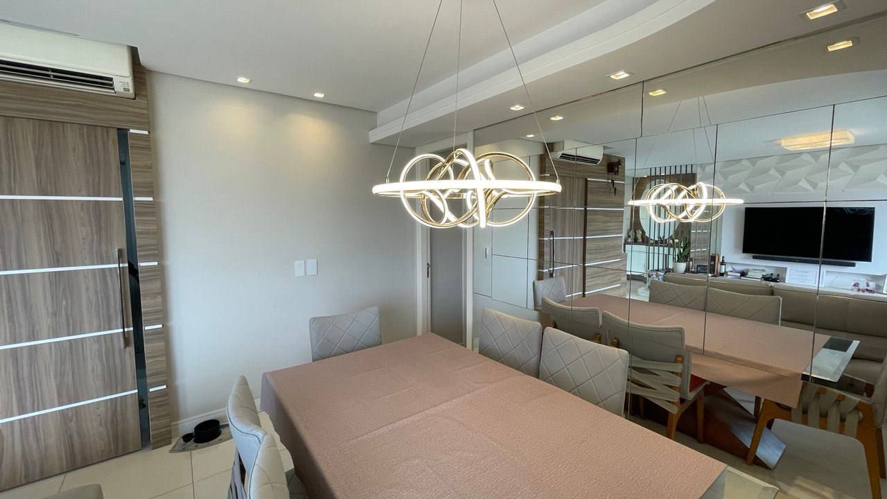 Além disso, o apartamento conta com uma cozinha americana, área de serviço, estar social, varanda gourmet, churrasqueira e ar condicionado, proporcionando um ambiente agradável e funcional. Com móveis planejados, luminárias e janelas grandes, a iluminação e a organização do espaço são garantidas.