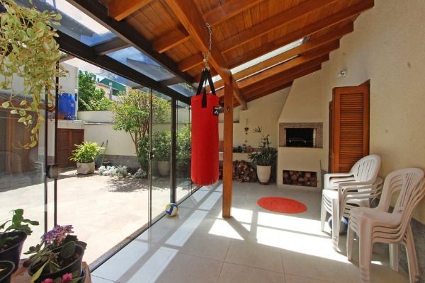 Casa com excelente padrão construtivo , com 360 m2 de área privativa , 4 vagas de garagem fechada , energia fotovoltaica. Localizada no Portal do Guarujá , sobrado com 3 pavimentos , amplo living com 3 ambientes , cozinha com móveis planejados, pátio com churrasqueira. Nos fundos do terreno , área de serviço fechada , 2 vagas de garagem , dependência de empregada com banheiro , amplo salão de festas com churrasqueira, atualmente utilizado com home office. No segundo andar , 3 dormitórios sendo uma suite master , com closet. Dormitórios com sacada em toda extensão da residência. No terceiro andar , espaço home cinema , com lavabo e sacada com vista para o guaiba. Local tranquilo com segurança privada , 24 hs , imóvel com total privacidade ..