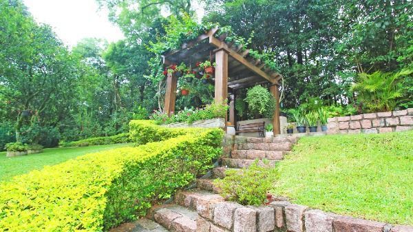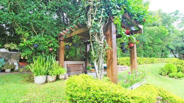 No jardim, um amplo gramado, muitas árvores frutíferas e vegetação ornamental além de um lindo pergolado para desfrutar o fim de tarde com um bom chimarrão.