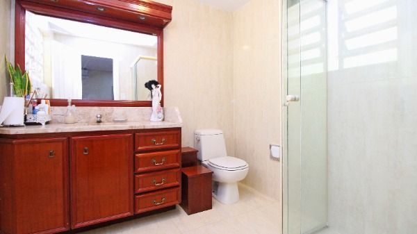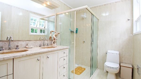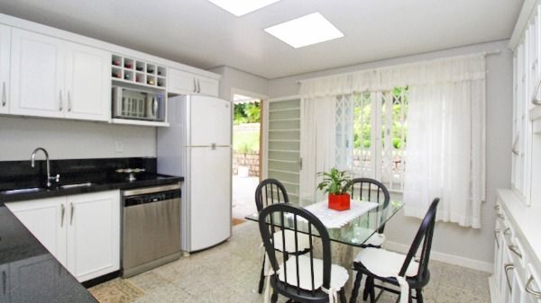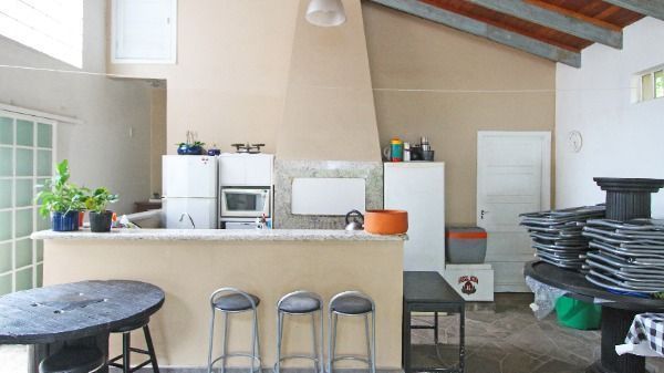 A residência possui ainda uma garagem fechada com 42m² para três carros, área de churrasqueira e banheiro auxiliar.